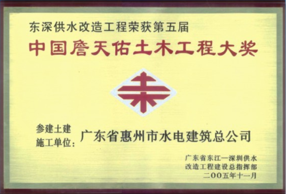 中國建設(shè)工程魯班獎(國家優(yōu)質(zhì)工程)——東深供水改造工程