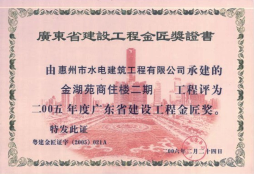廣東省建設(shè)工程金匠獎——金湖苑商住樓二期