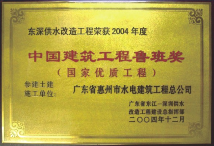 中國(guó)建設(shè)工程魯班獎(jiǎng)(國(guó)家優(yōu)質(zhì)工程)——東深供水改造工程