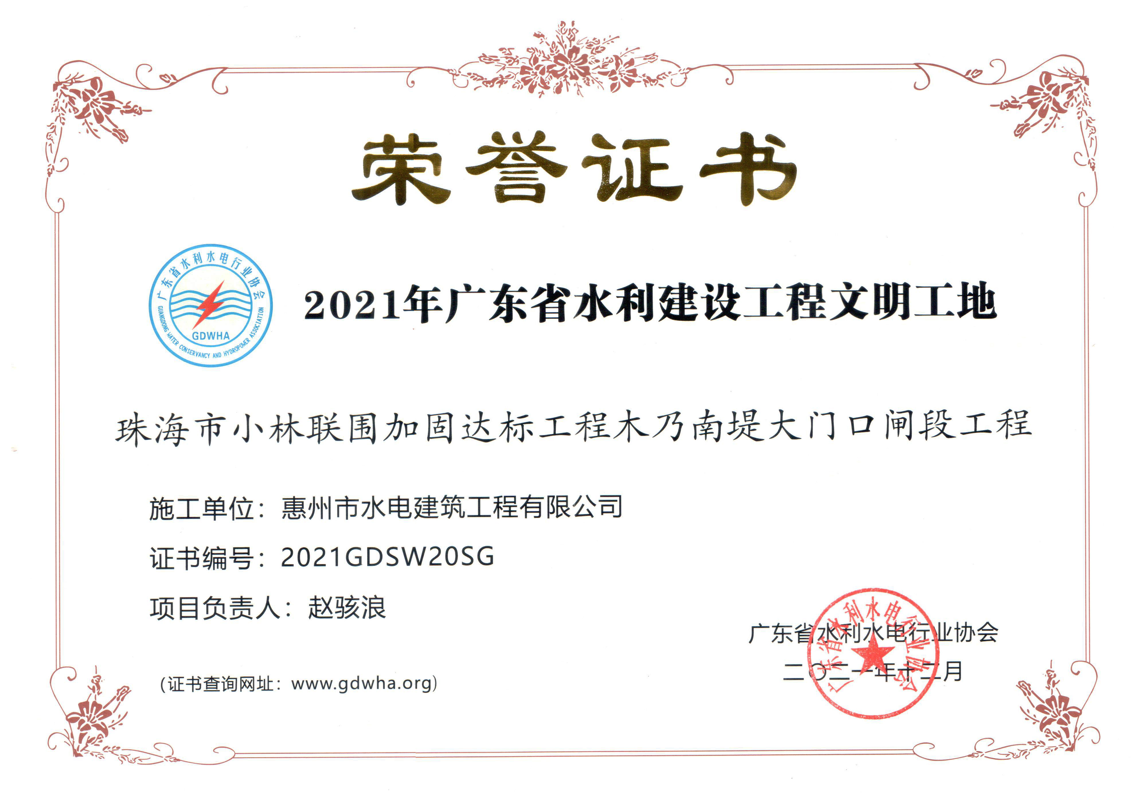 廣東省水利建設(shè)工程文明工地——珠海市小林聯(lián)圍加固達標(biāo)工程木乃南堤大門口閘段工程