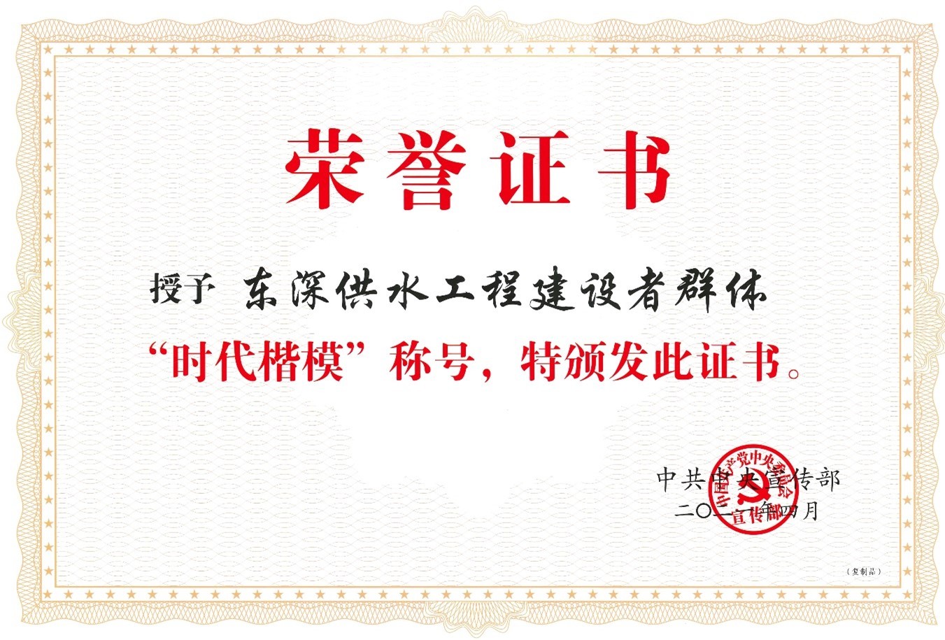 2021年4月,中共中央宣傳部授予東深供水工程建設(shè)者群體“時(shí)代楷模”稱號(hào),褒揚(yáng)他們是“建設(shè)守護(hù)香港供水生命的光榮團(tuán)隊(duì)”。近日,市水電公司收到“時(shí)代楷模”榮譽(yù)證書及牌匾,這是屬于全體建設(shè)者的榮譽(yù),也是給予市水電公司的一份無(wú)上榮光。東江—深圳供水工程(簡(jiǎn)稱“東深供水…......