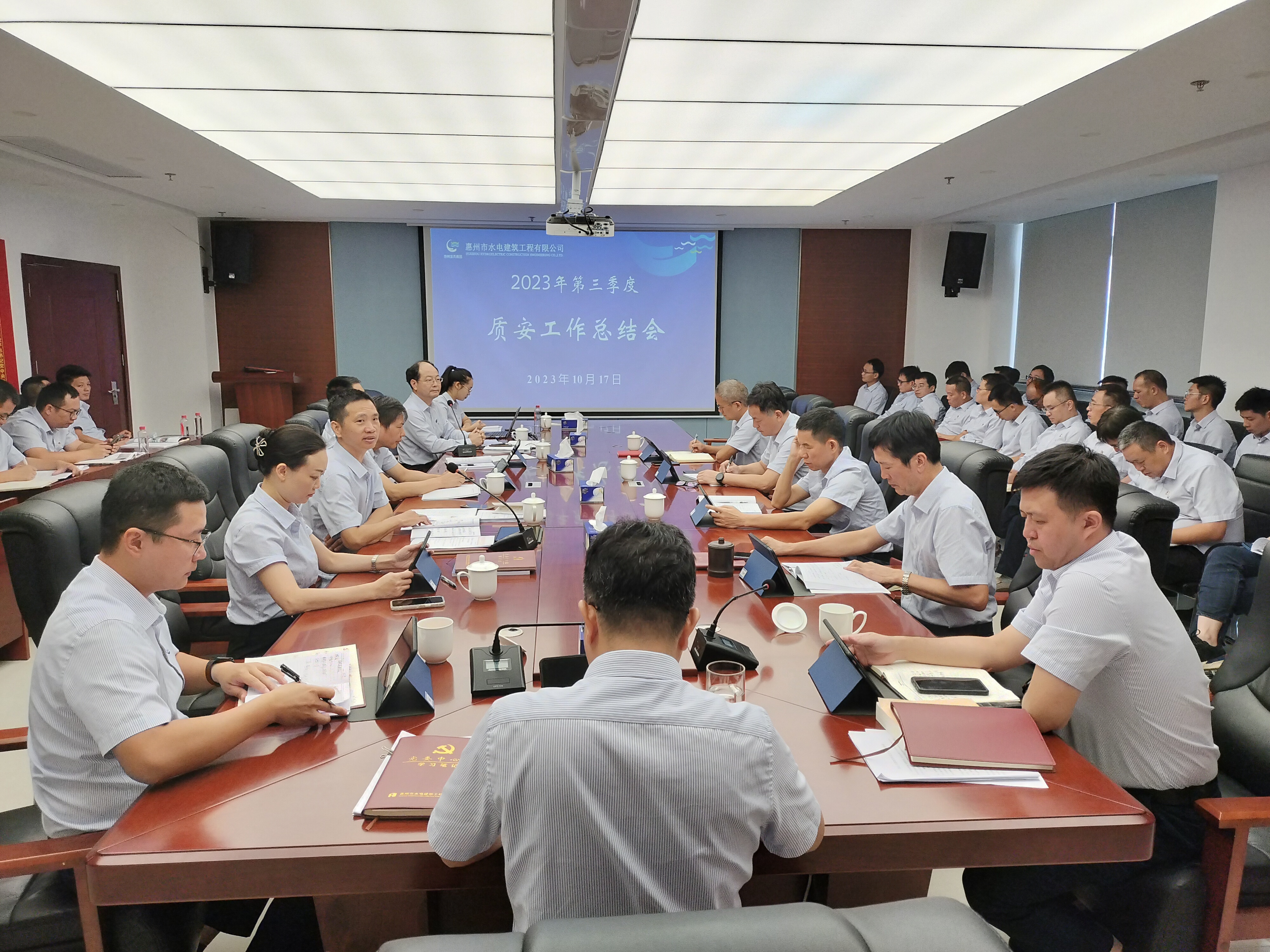 10月17日上午,市水電公司在1419會議室召開工作總結(jié)會議,主要內(nèi)容包含第三季度質(zhì)量安全工作總結(jié)、第四屆施工專項方案編制大賽頒獎儀式以及對2023年度安全生產(chǎn)和消防工作考核進行動員部署。公司領(lǐng)導班子、安委會全體成員,各職能部門、分隊、所屬企業(yè)負責人及質(zhì)安小組骨干參加會議。會議由分管安全生產(chǎn)副總經(jīng)理陳占瑞主持。