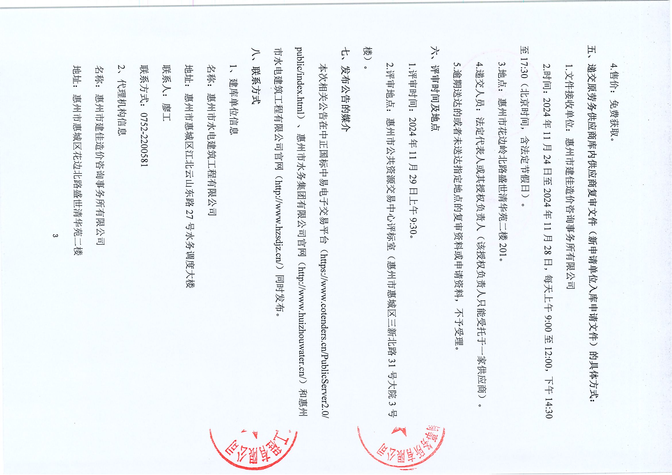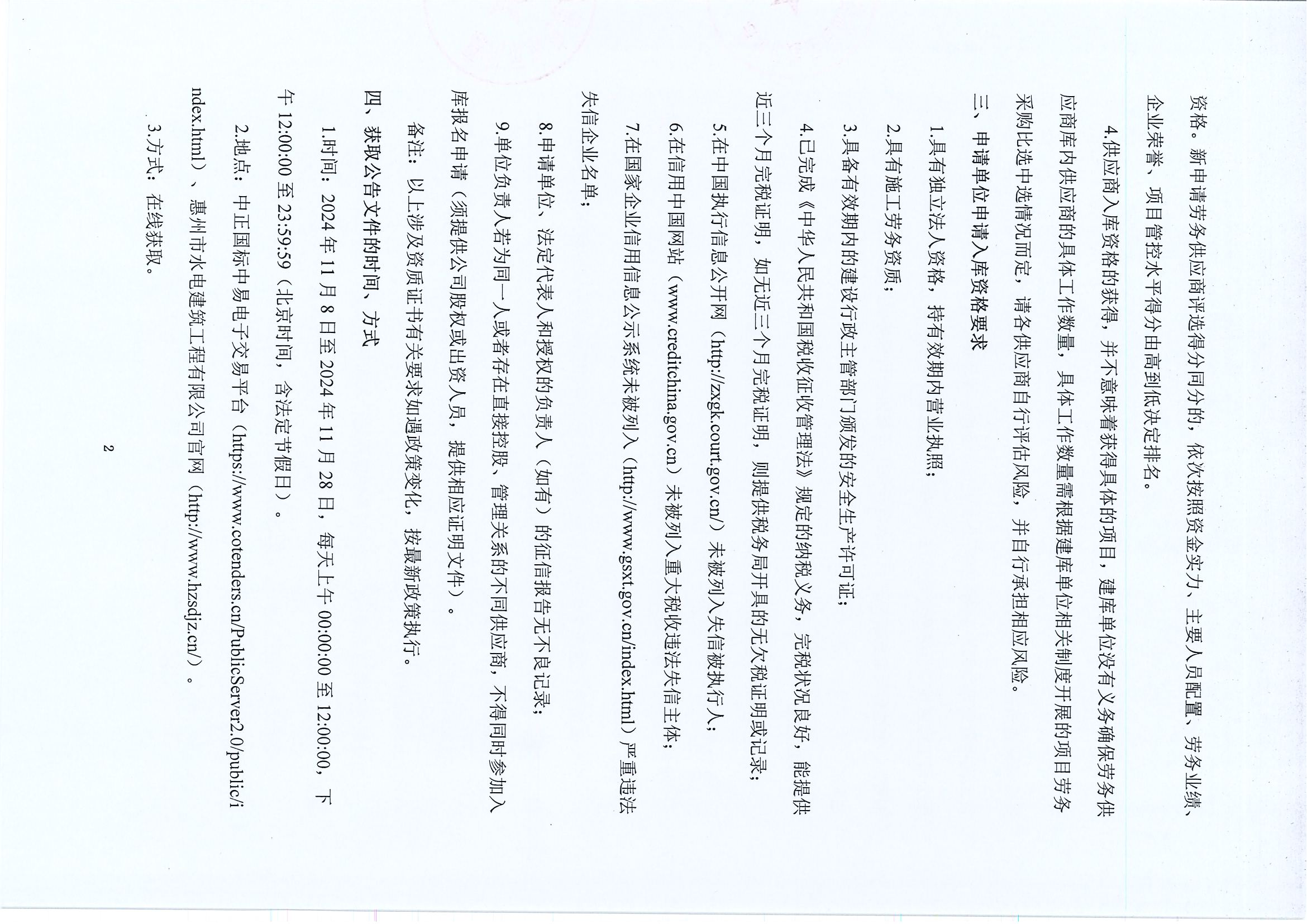 惠州市水電建筑工程有限公司勞務(wù)供應(yīng)商庫擴庫公告文件: