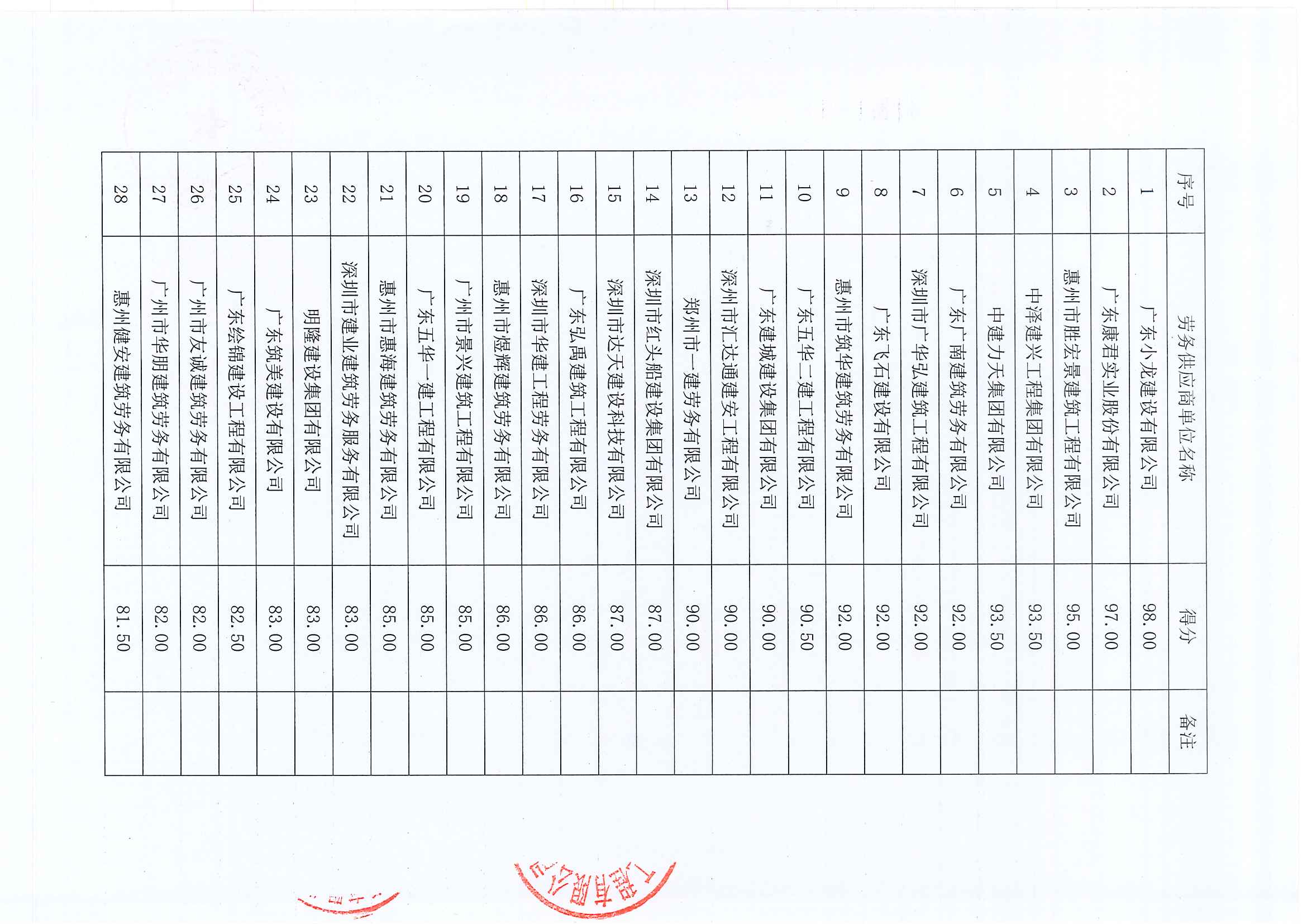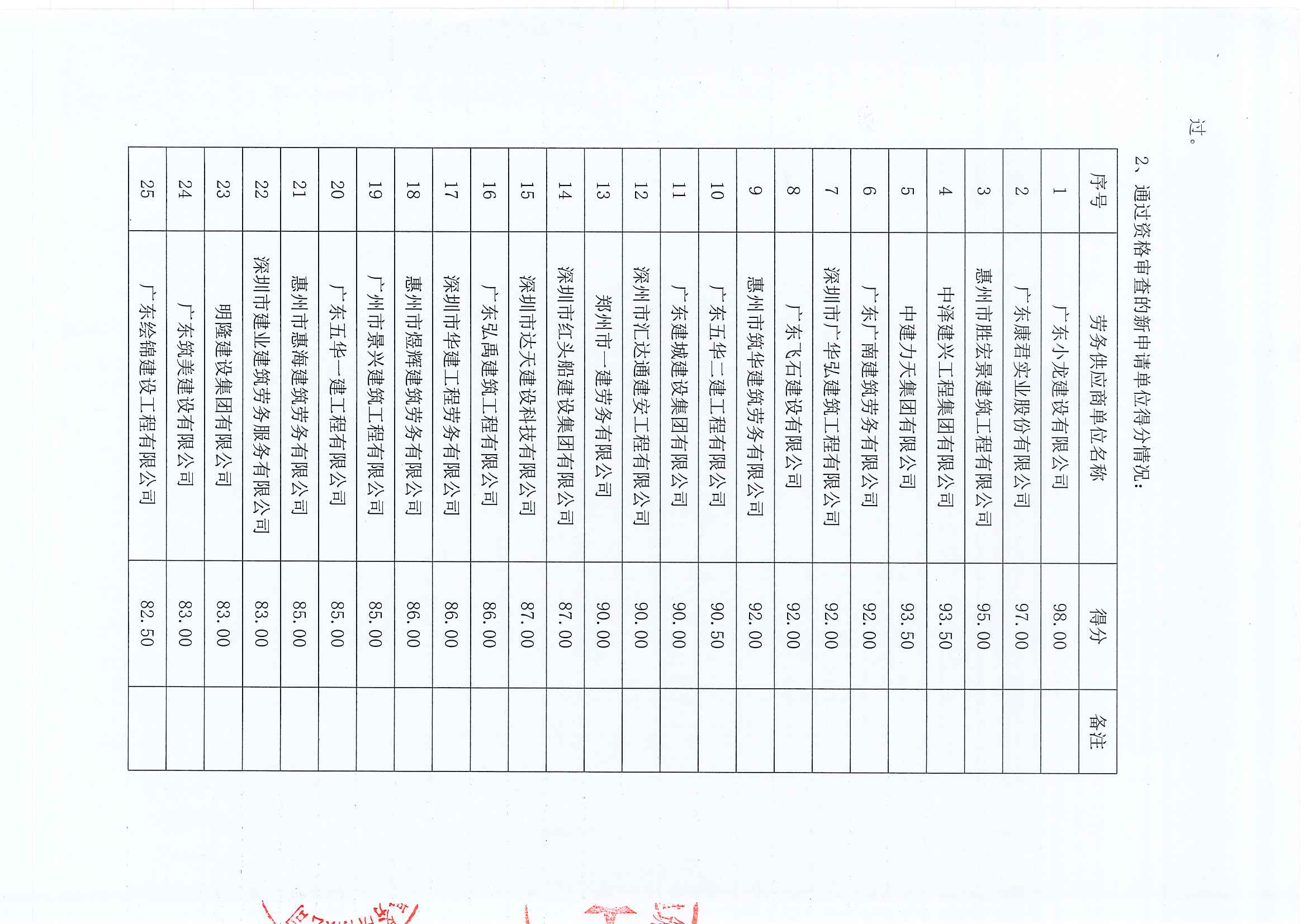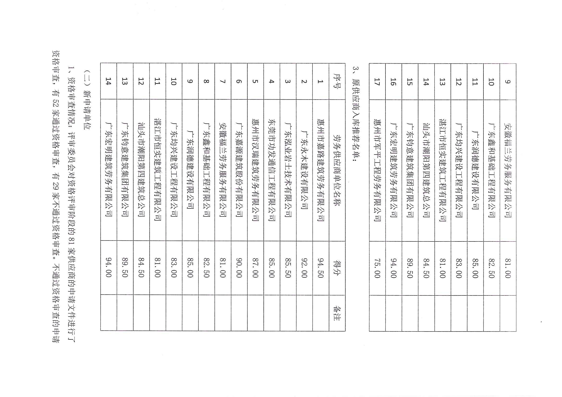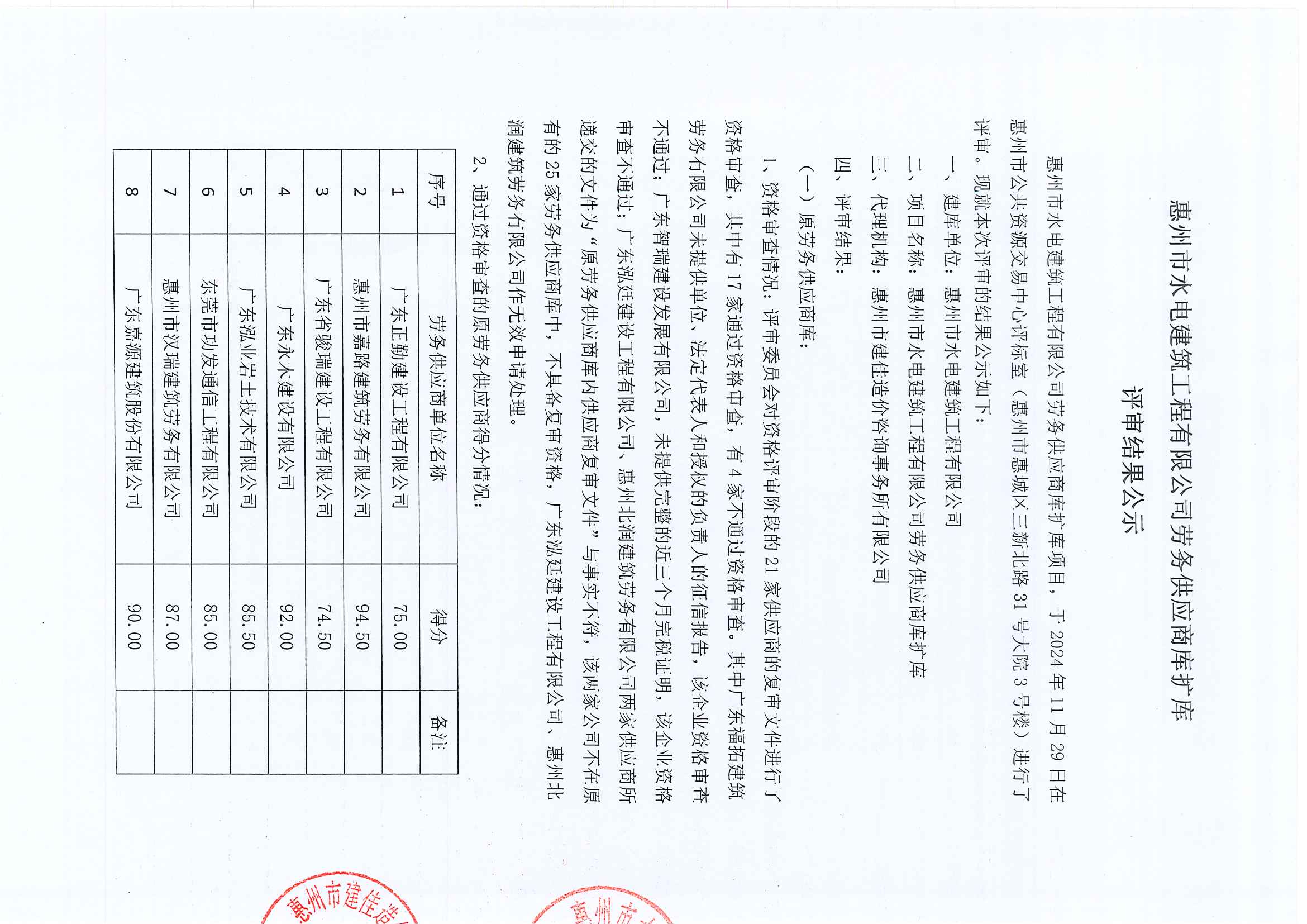 惠州市水電建筑工程有限公司勞務(wù)供應(yīng)商庫(kù)擴(kuò)庫(kù)評(píng)審結(jié)果公示