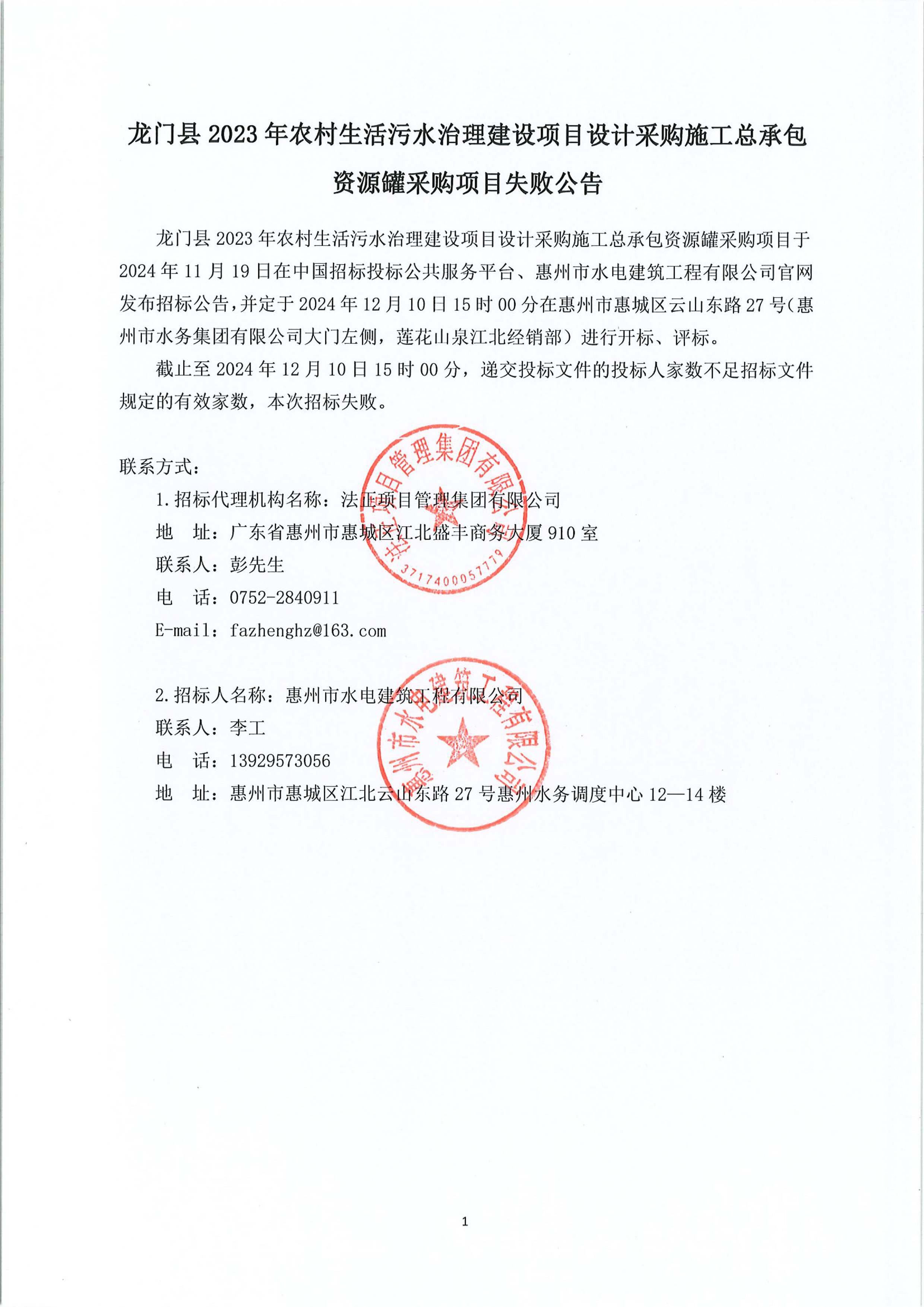 龍門縣2023年農(nóng)村生活污水治理建設(shè)項(xiàng)目設(shè)計(jì)采購施工總承包資源罐采購項(xiàng)目失敗公告