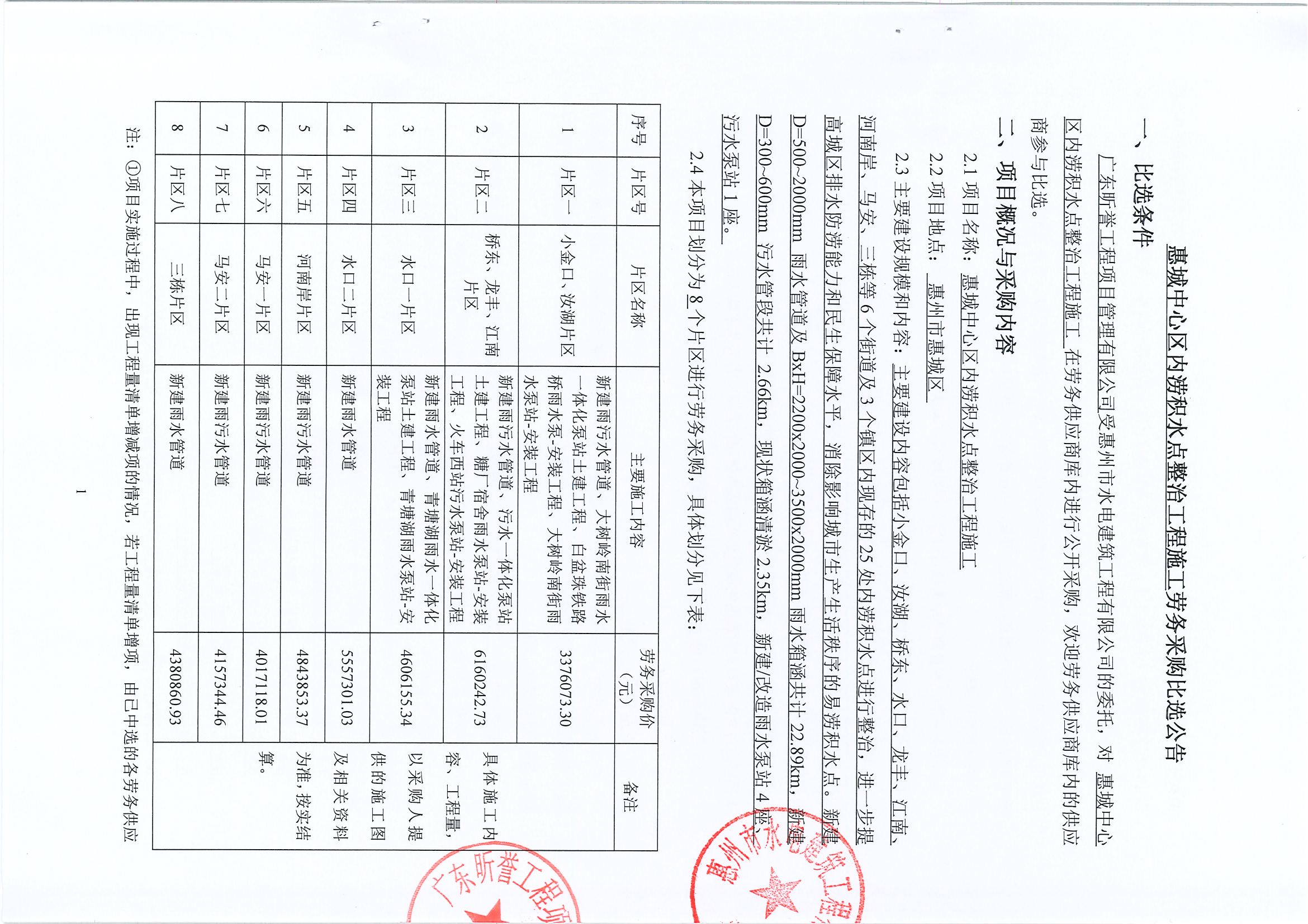 惠城中心區(qū)內(nèi)澇積水點(diǎn)整治工程施工勞務(wù)采購比選公告