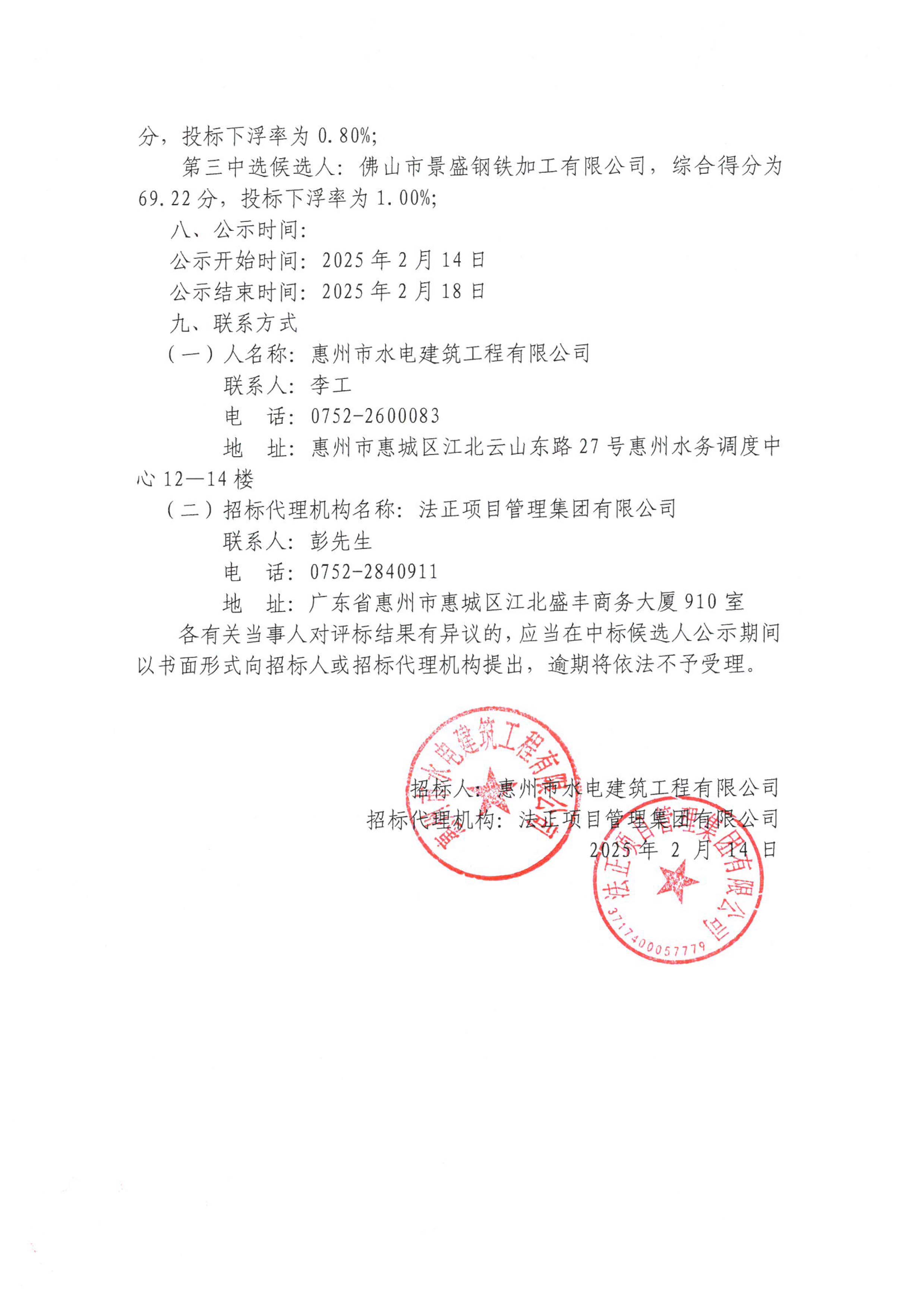 陳江街道辦二號污水處理廠及管網建設PPP項目新增尾水管道工程鋼管及構件采購項目中標候選人公示