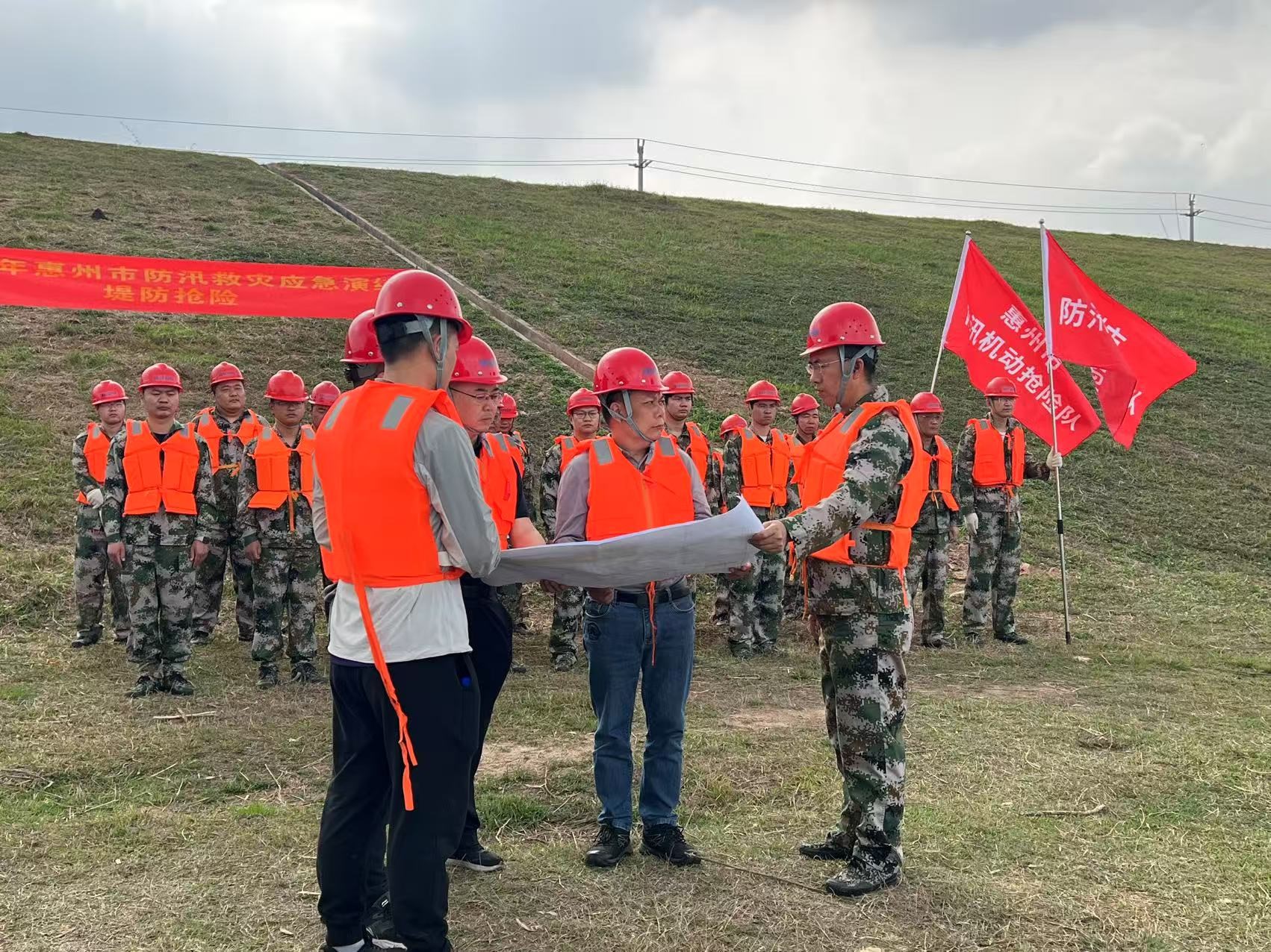 410日下午,市三防辦在惠州大堤西枝江段開(kāi)展2025年惠州市防汛救災(zāi)應(yīng)急演練,我司作為市防汛機(jī)動(dòng)搶險(xiǎn)隊(duì)參與“堤防管涌搶險(xiǎn)”科目演練。