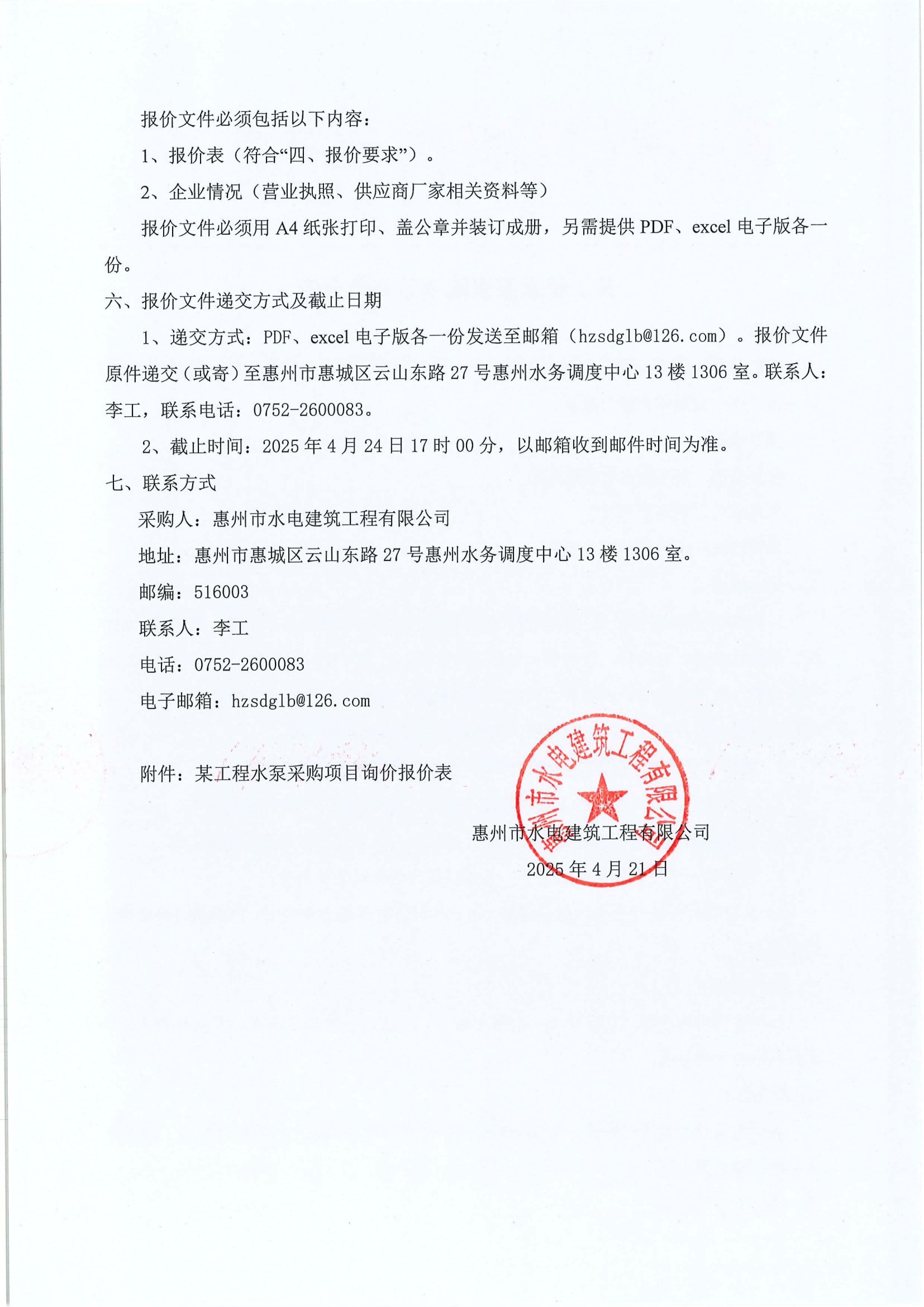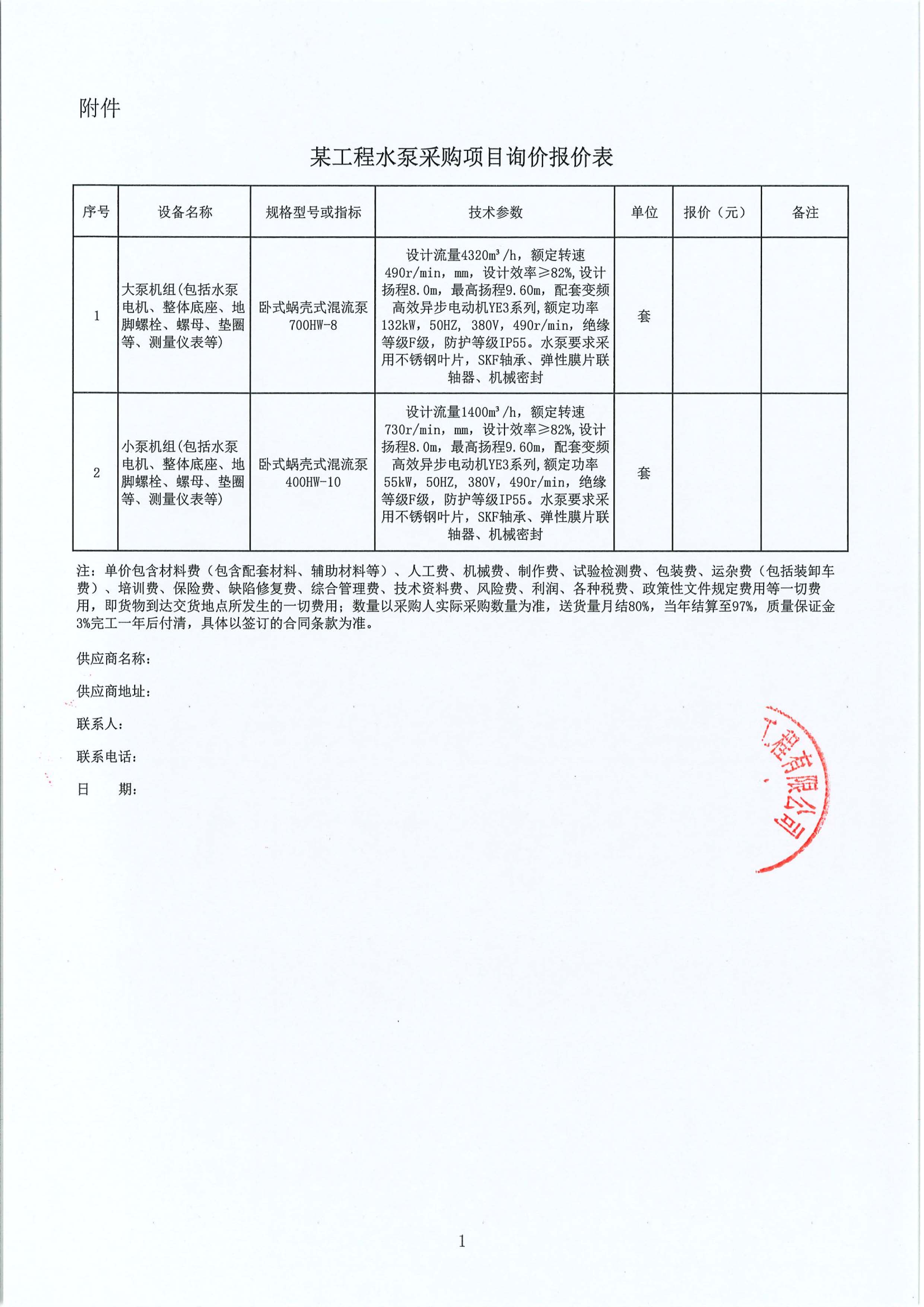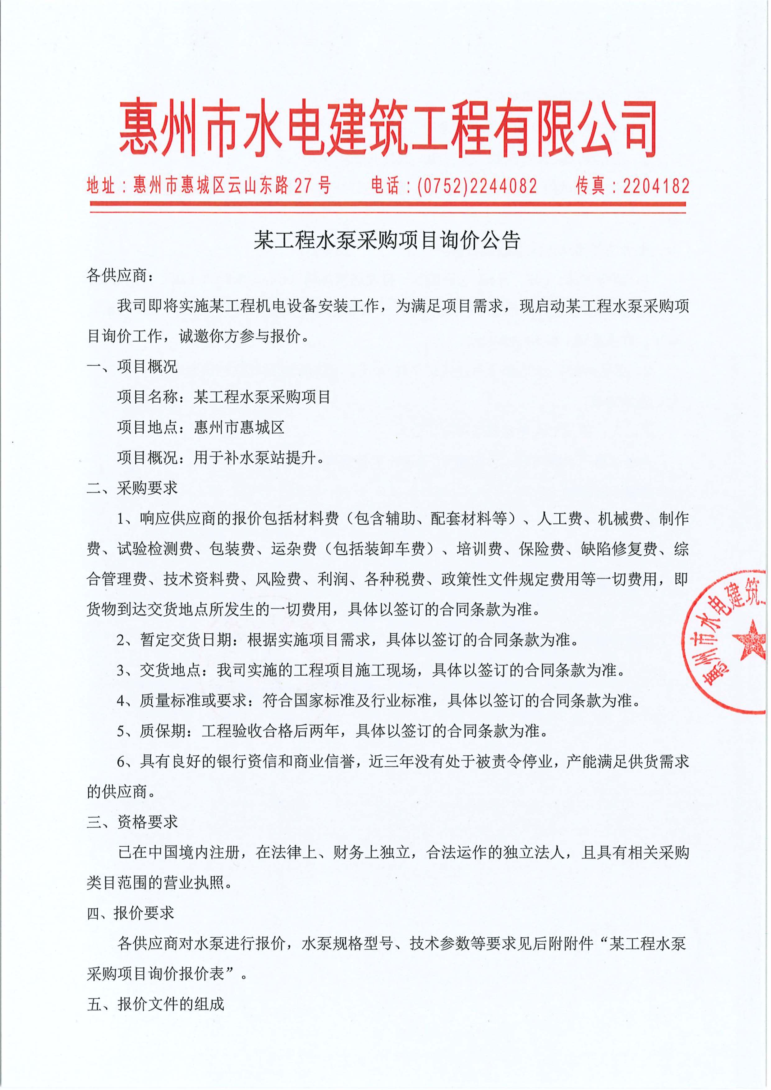 惠州市惠陽區(qū)淡水河防洪排澇項目-惠陽城區(qū)橋背排澇站擴容改造工程金屬結(jié)構(gòu)及機電設(shè)備采購項目詢價公告