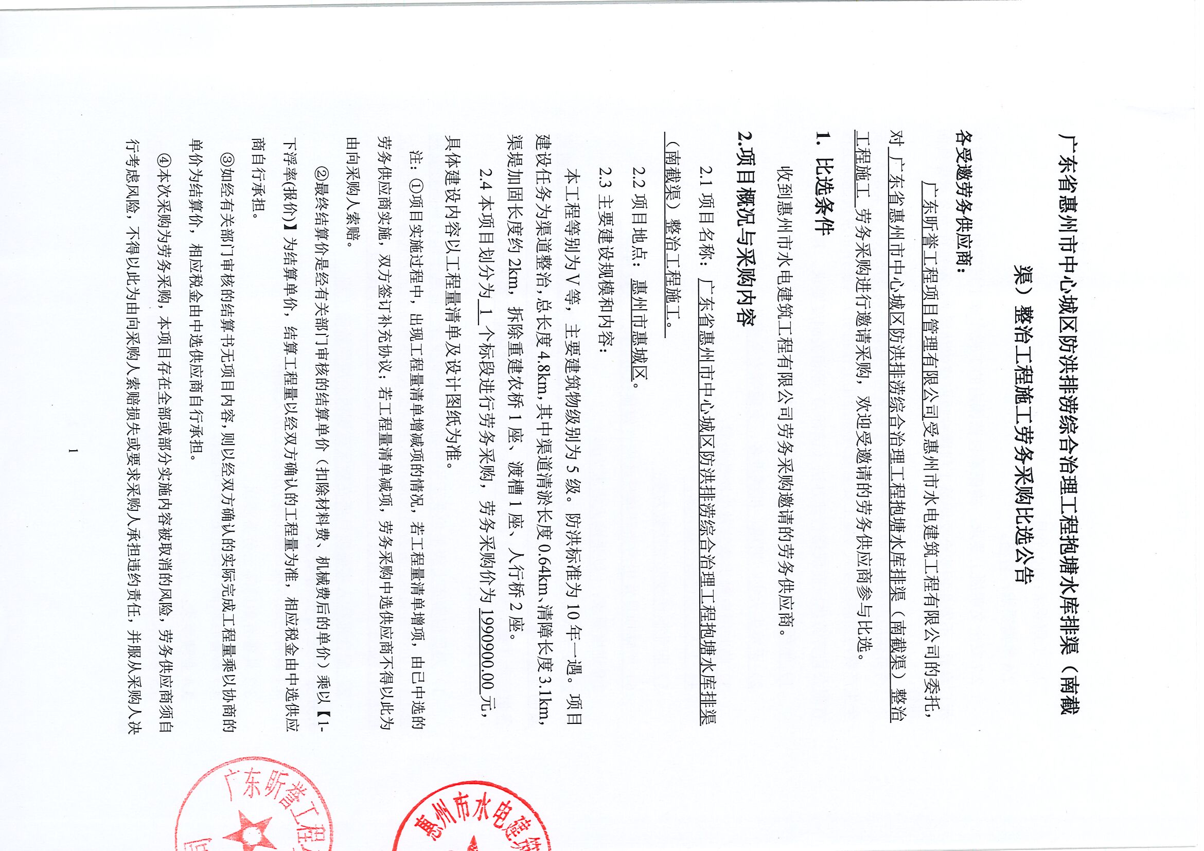 廣東省惠州市中心城區(qū)防洪排澇綜合治理工程釣魚公排澇站擴(kuò)建項目勞務(wù)采購比選公告
