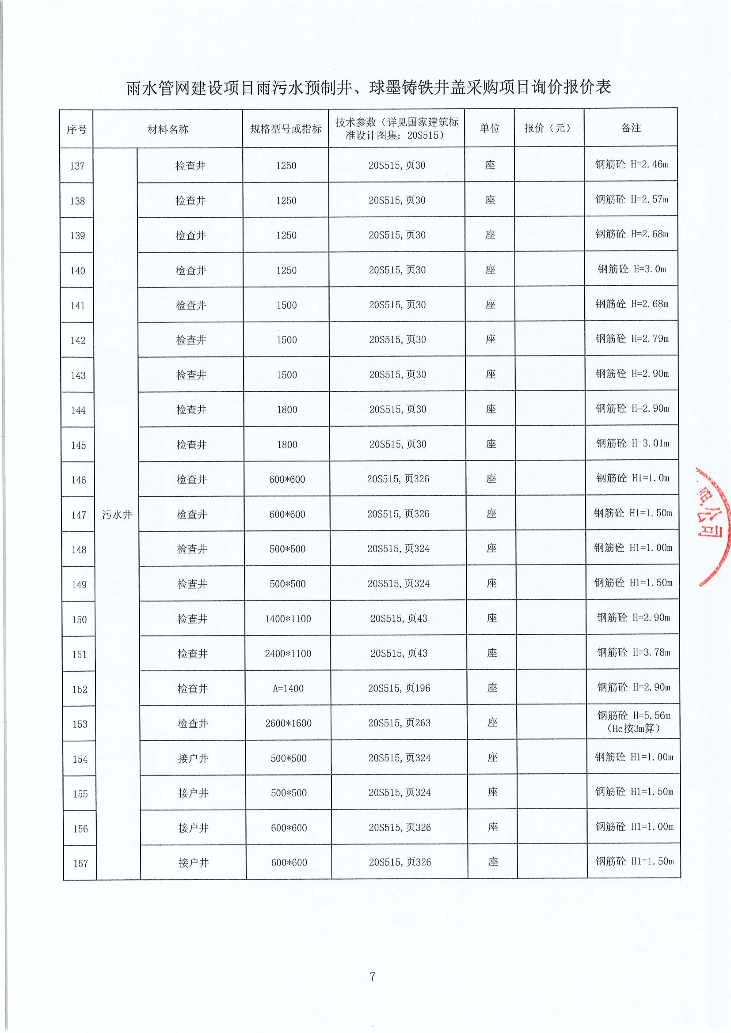 雨水管網(wǎng)建設(shè)項目雨污水預(yù)制井、球墨鑄鐵井蓋采購項目詢價公告附件: