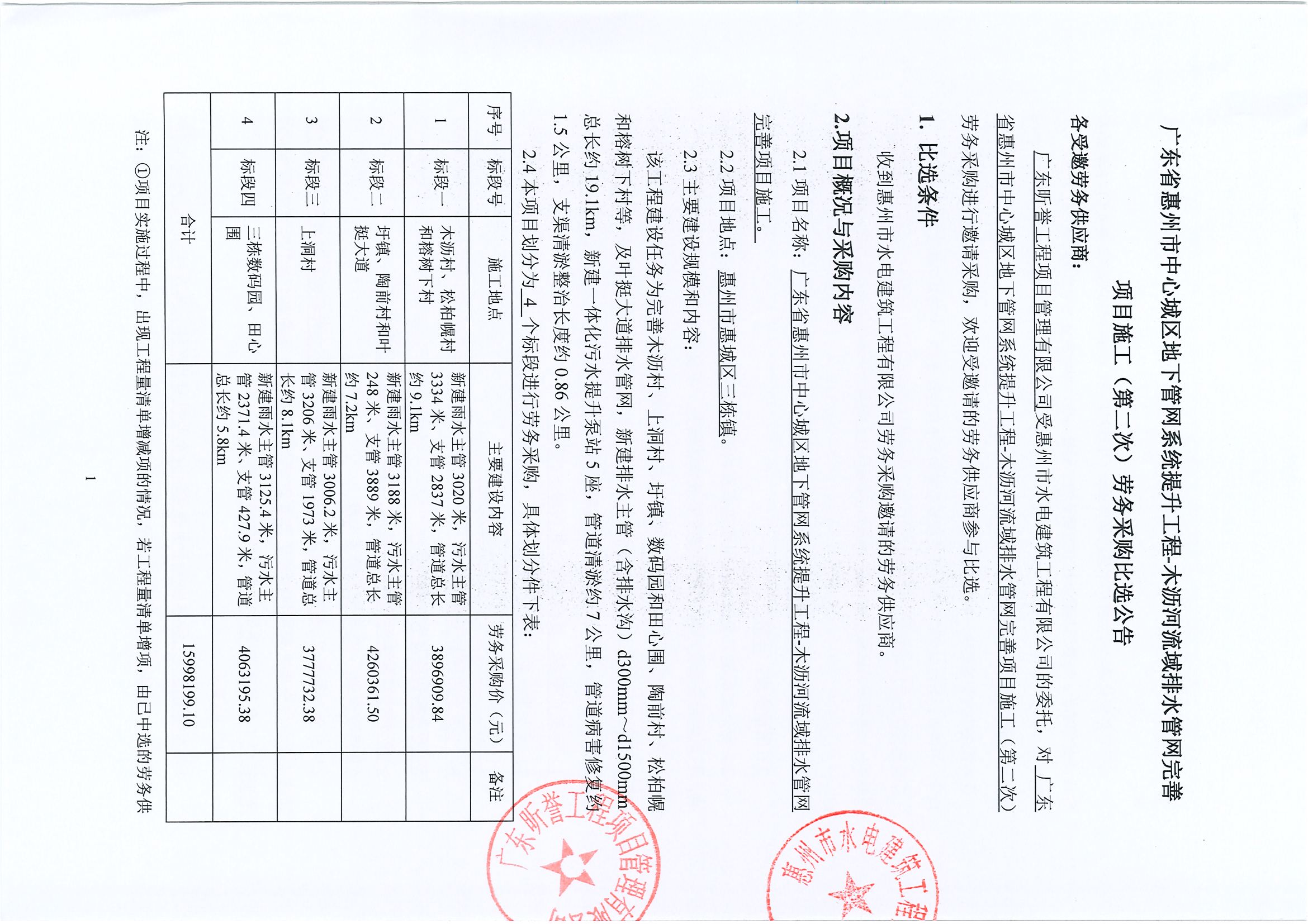 廣東省惠州市中心城區(qū)地下管網(wǎng)系統(tǒng)提升工程-木瀝河流域排水管網(wǎng)完善項(xiàng)目施工(第二次)勞務(wù)采購(gòu)比選公告