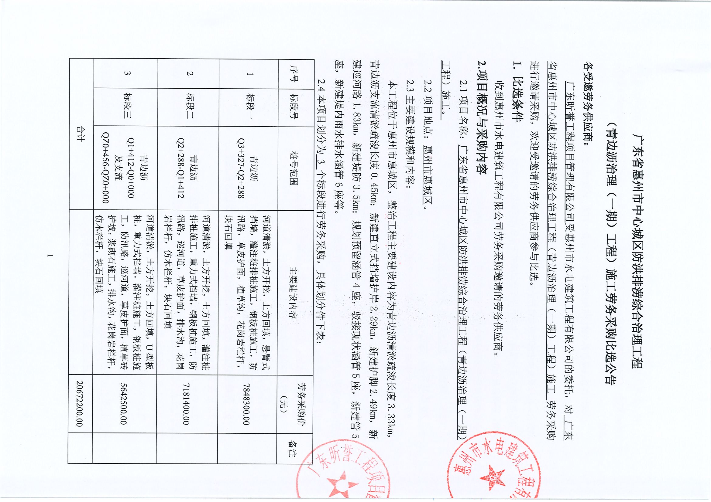 廣東省惠州市中心城區(qū)防洪排澇綜合治理工程(青邊瀝治理(一期)工程)施工勞務采購比選公告