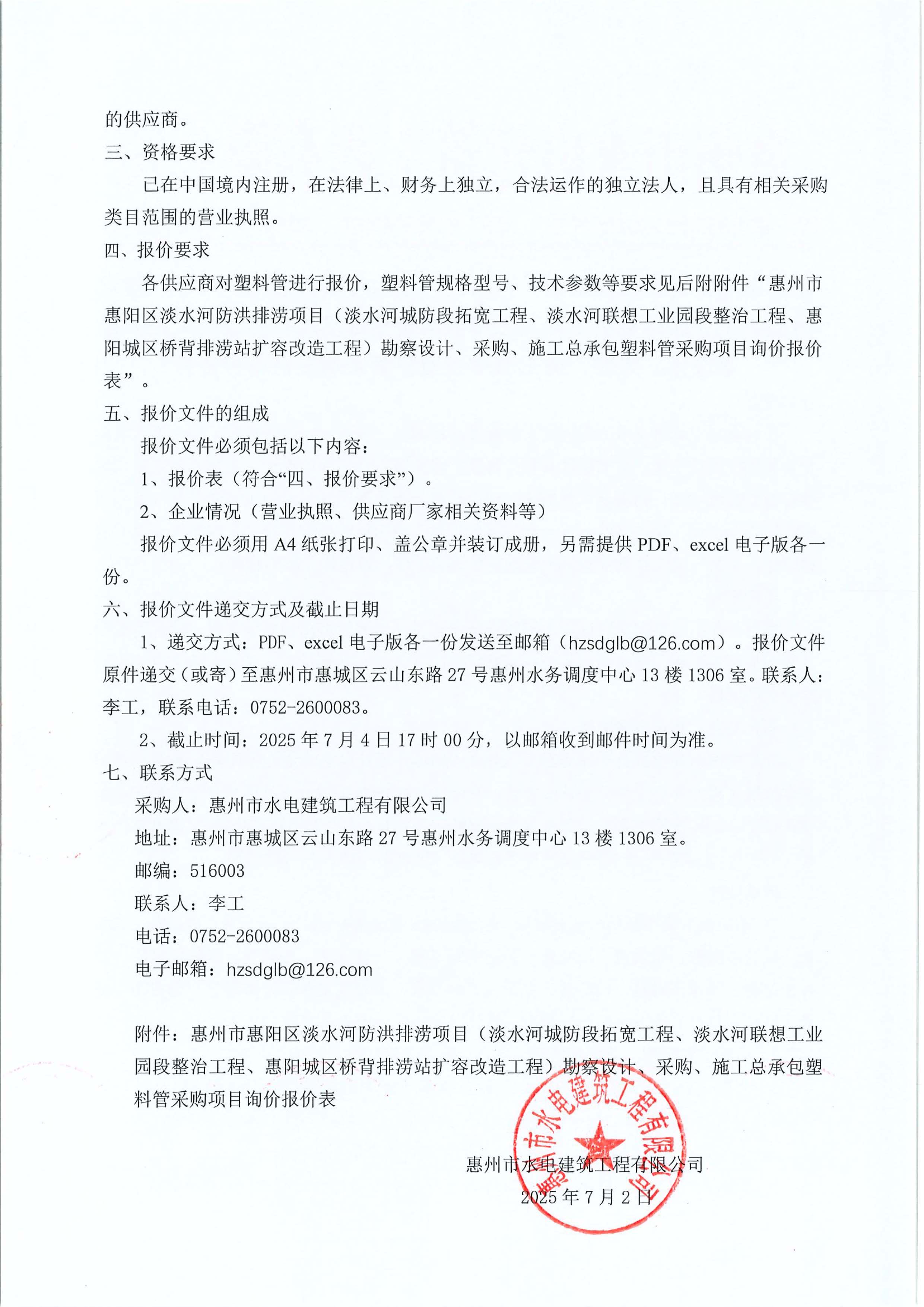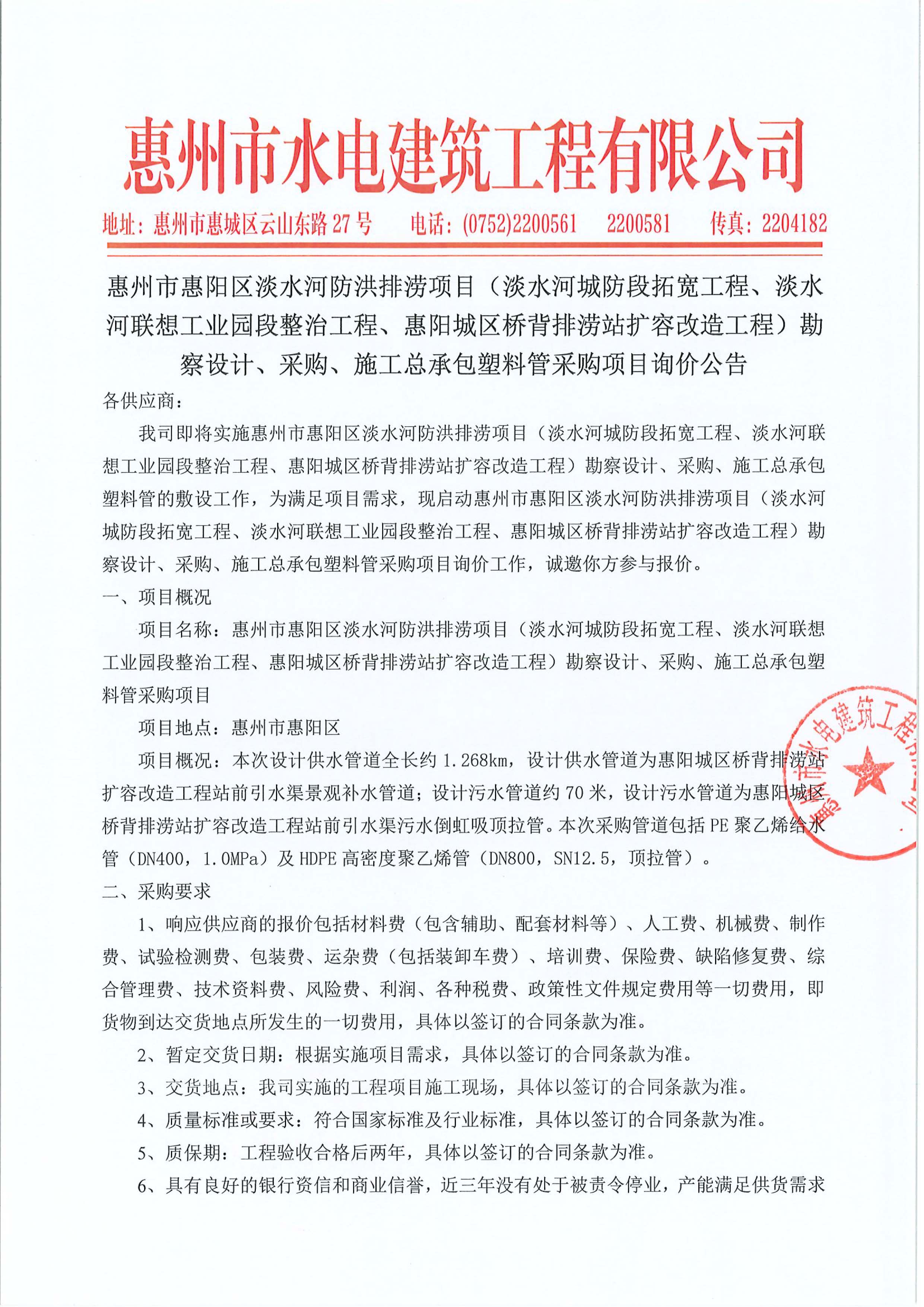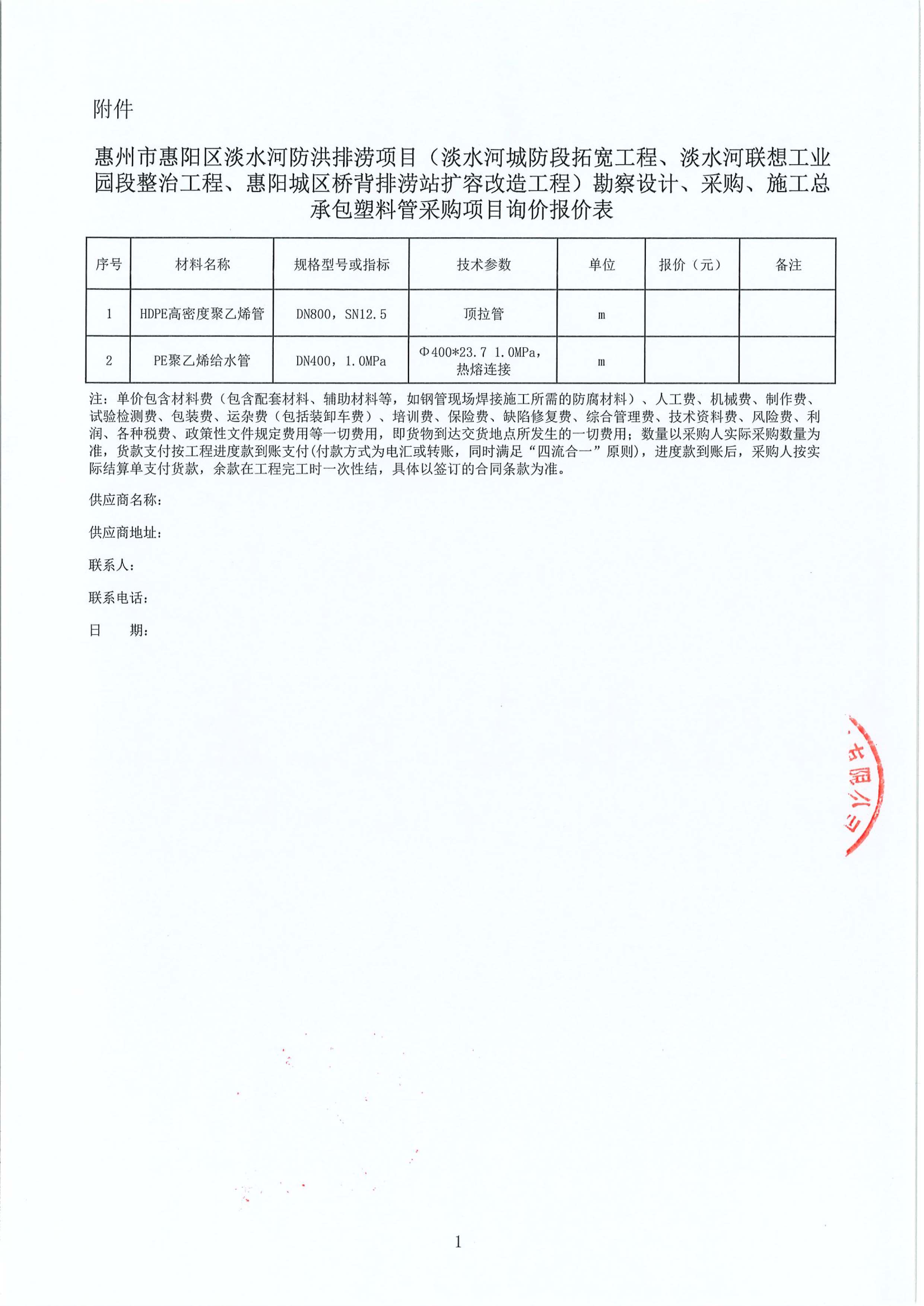 勘察設(shè)計、采購、施工總承包塑料管采購項(xiàng)目詢價報價表