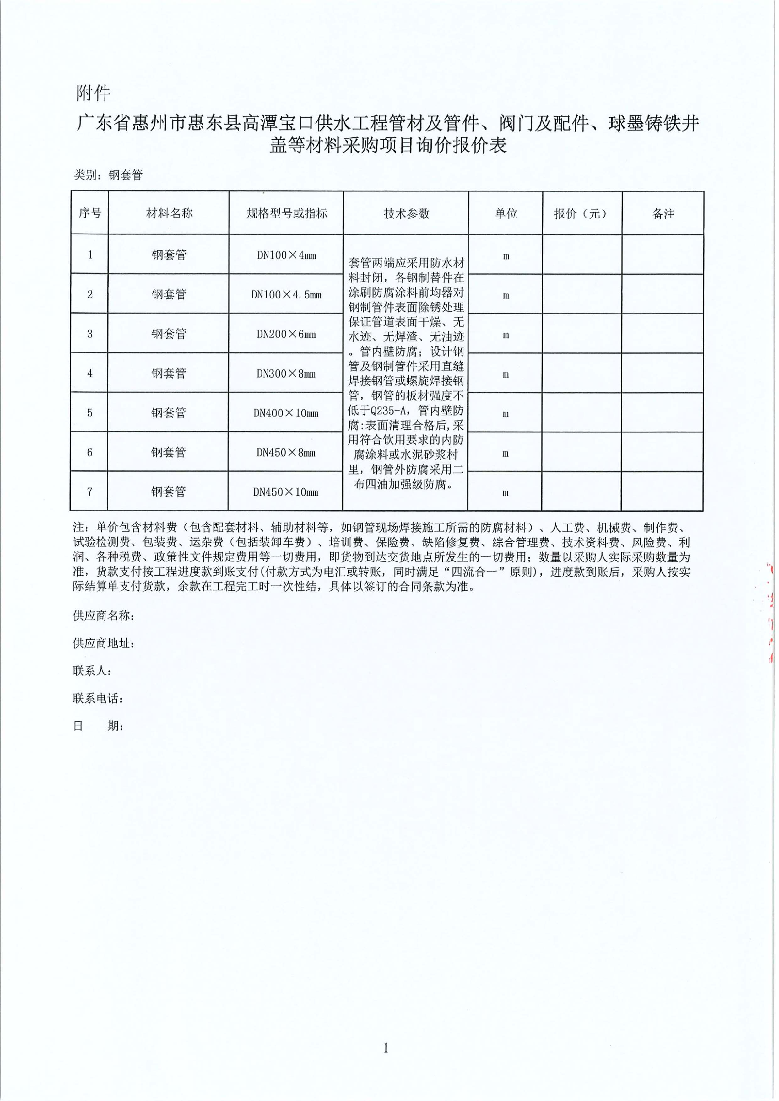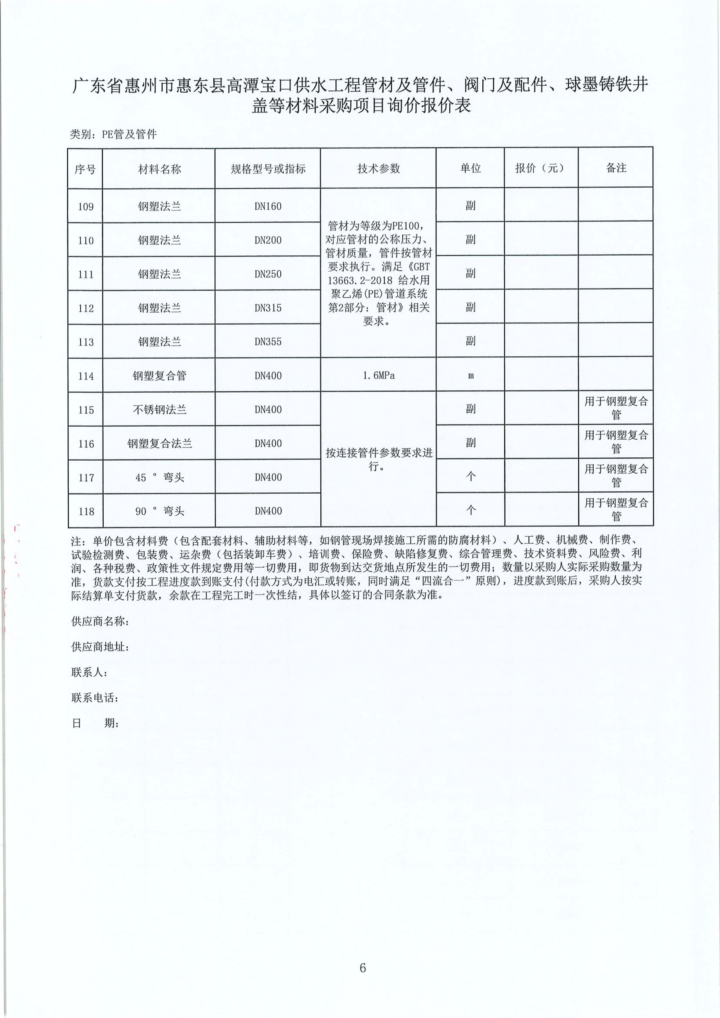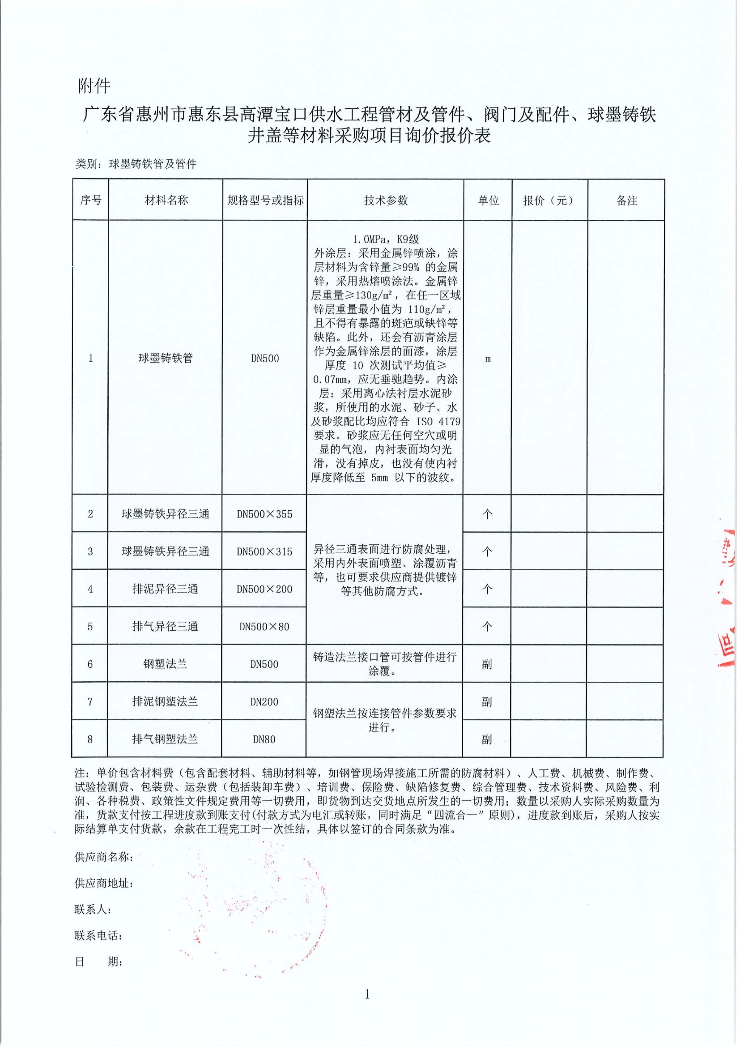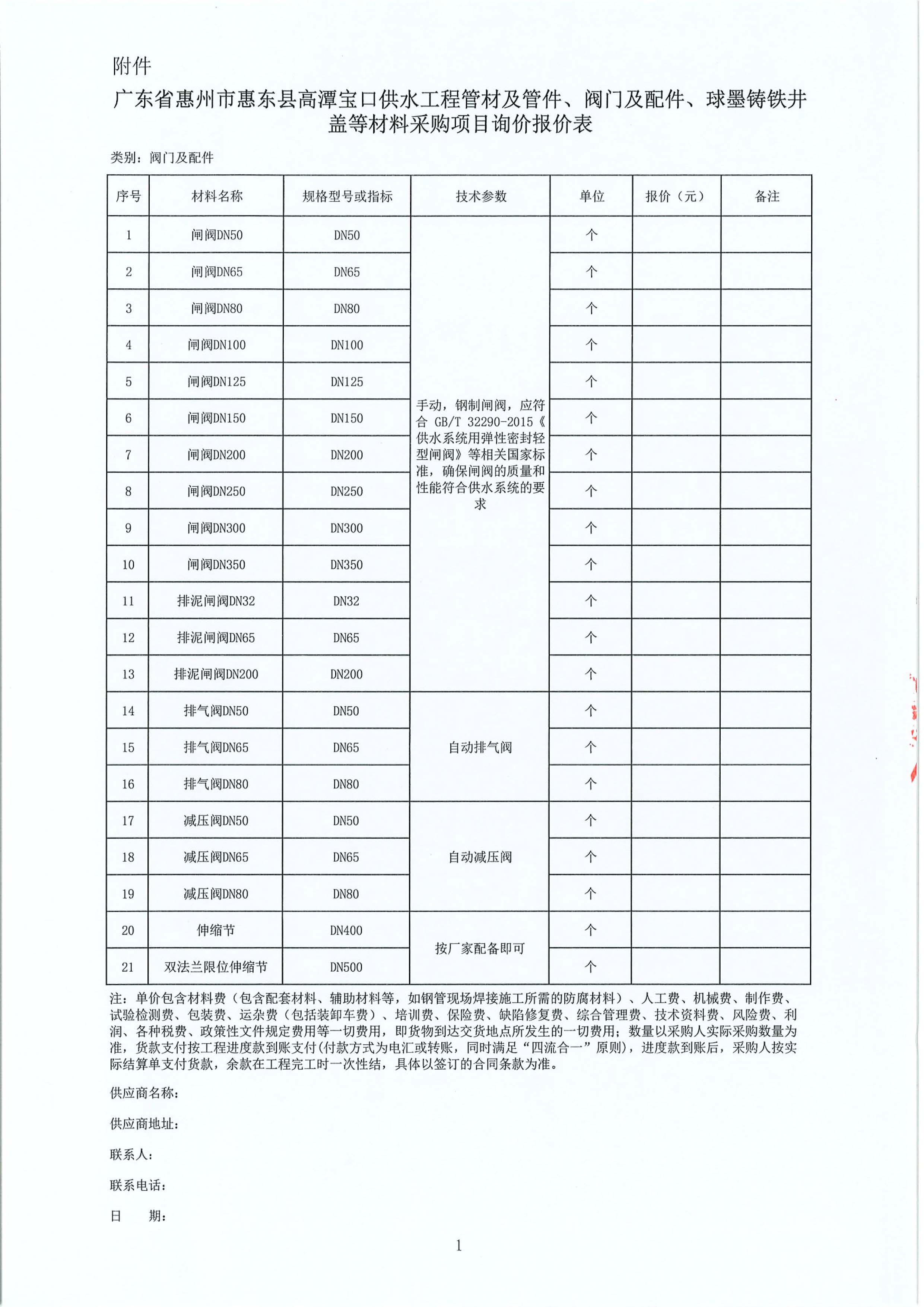 附件:廣東省惠州市惠東縣高潭寶口供水工程施工管材及管件、閥門及配件、球墨鑄鐵井蓋等材料采購項(xiàng)目詢價(jià)報(bào)價(jià)表