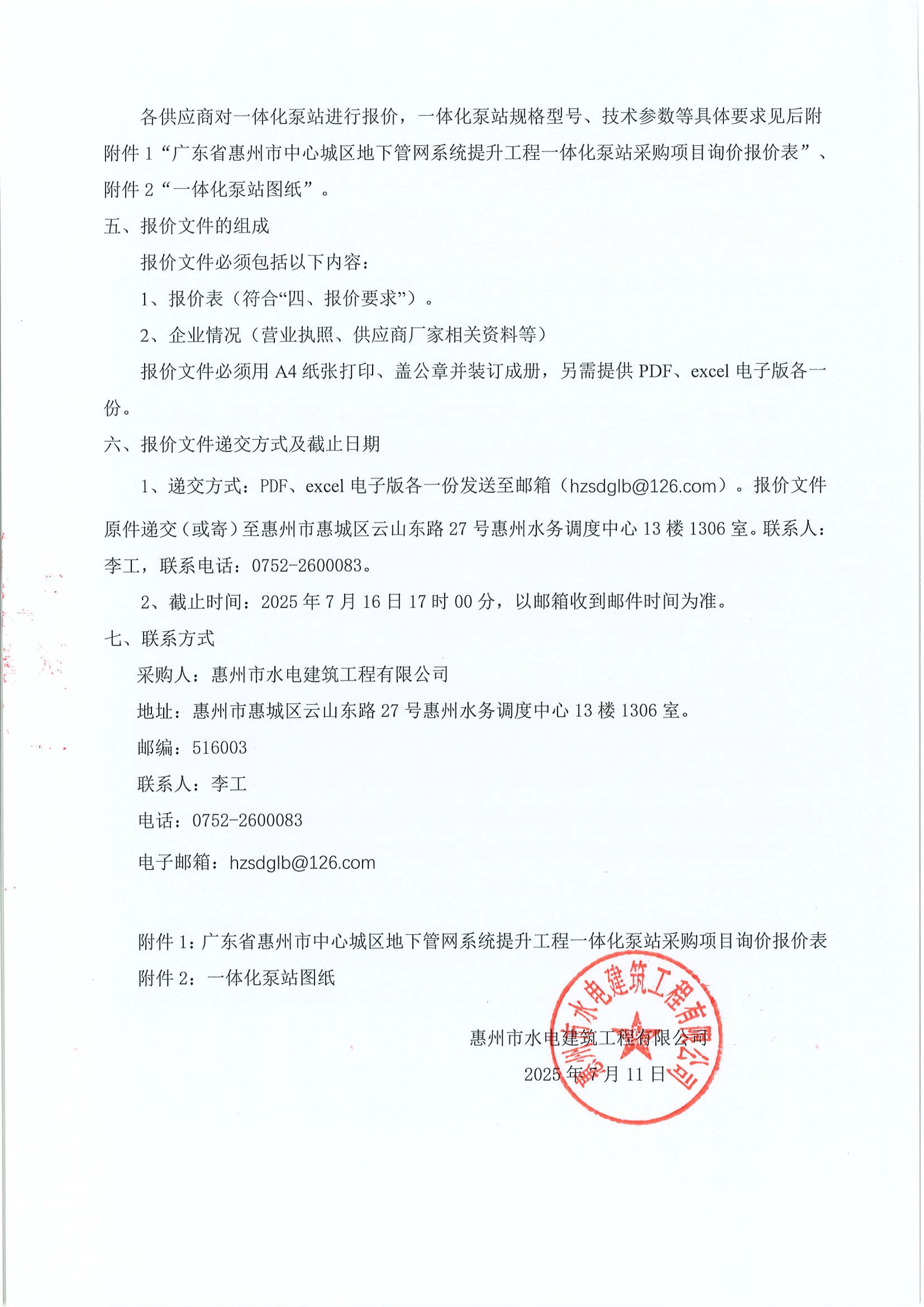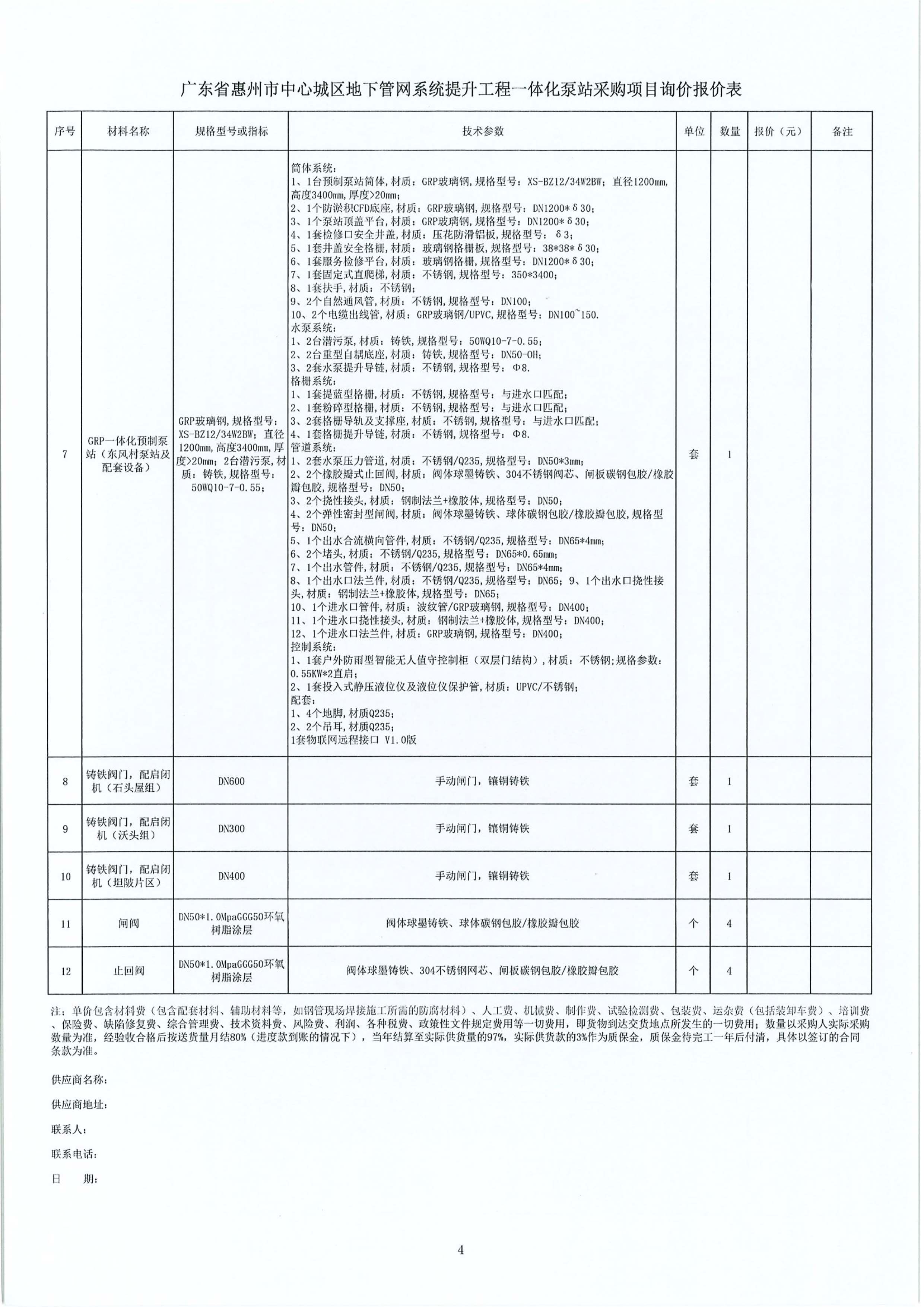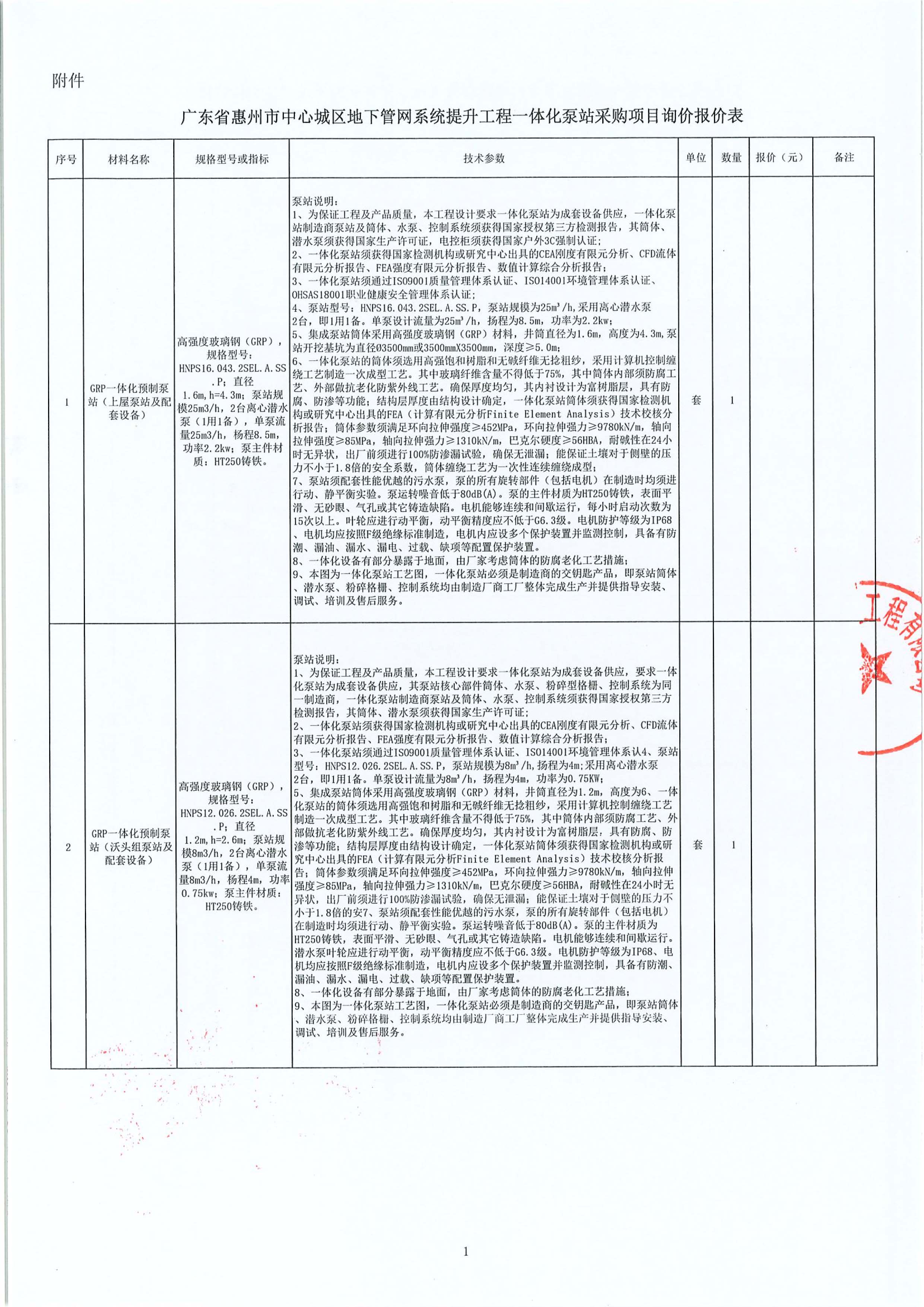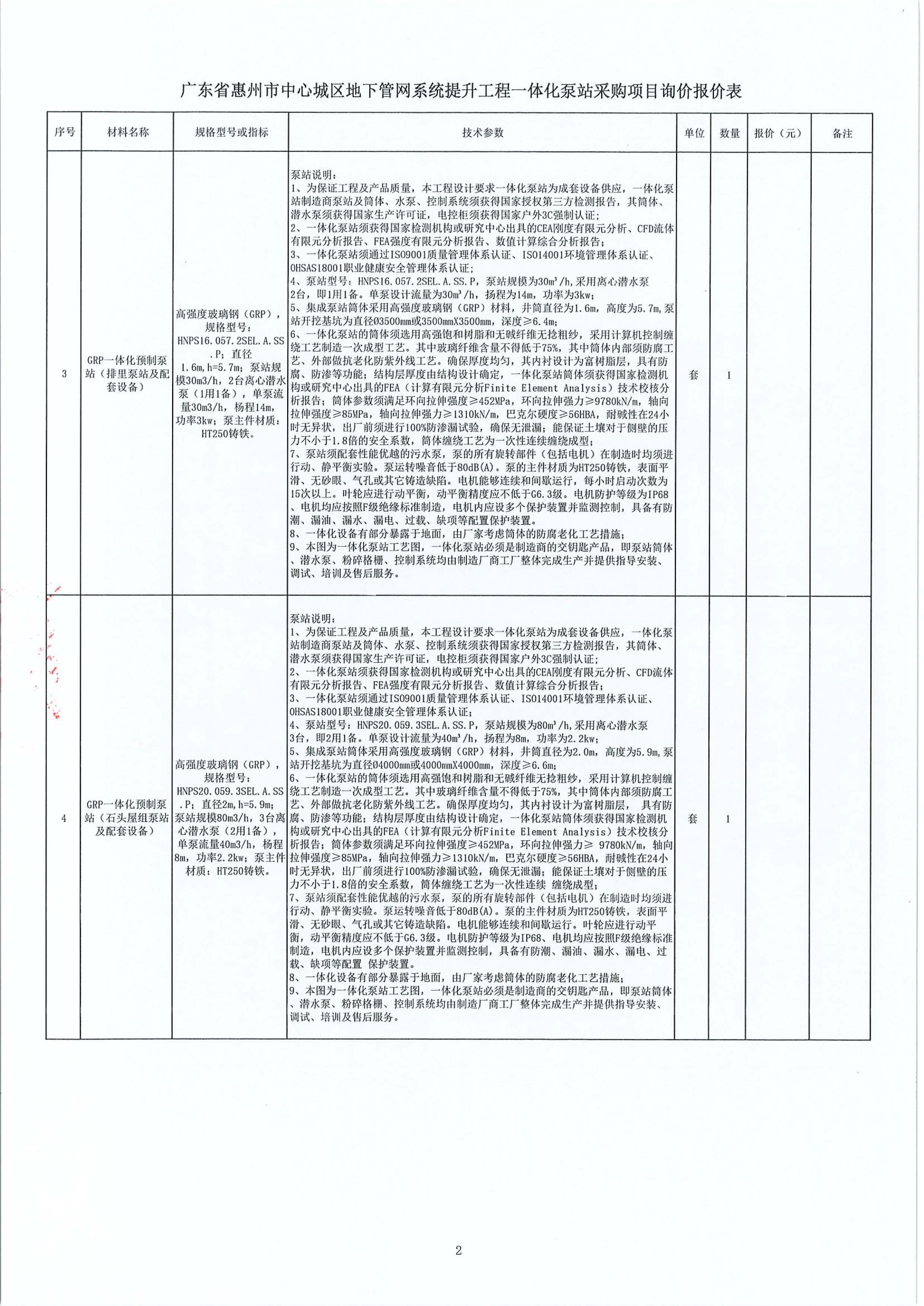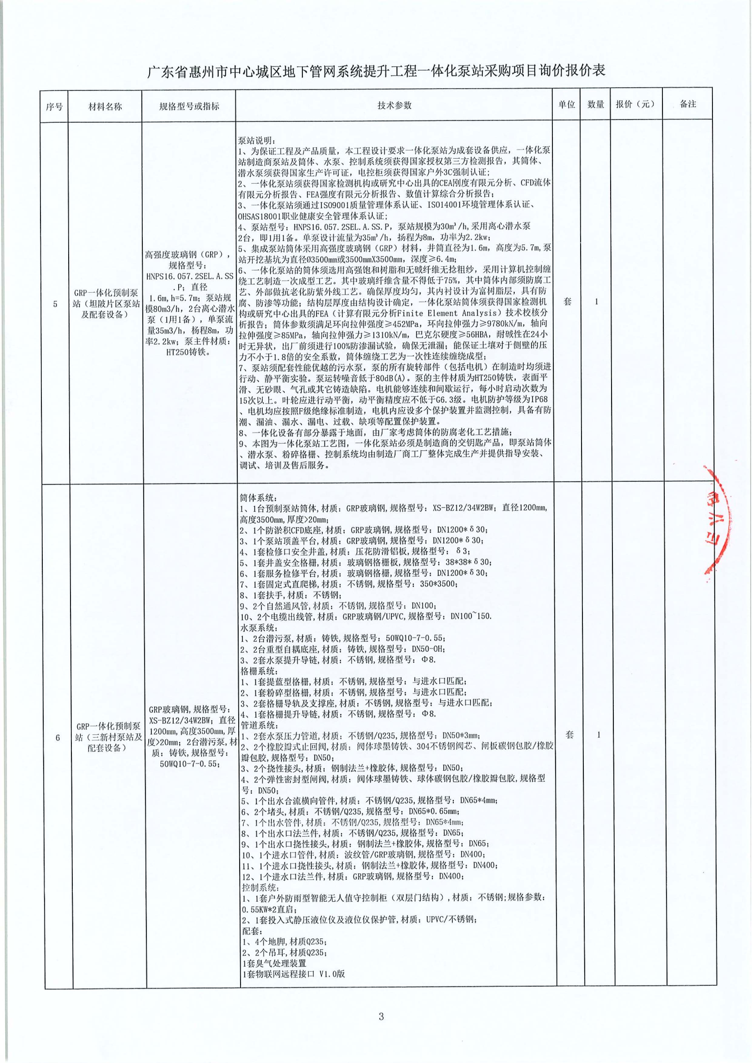 廣東省惠州市中心城區(qū)地下管網(wǎng)系統(tǒng)提升工程一體化泵站采購項目詢價公告附件:
