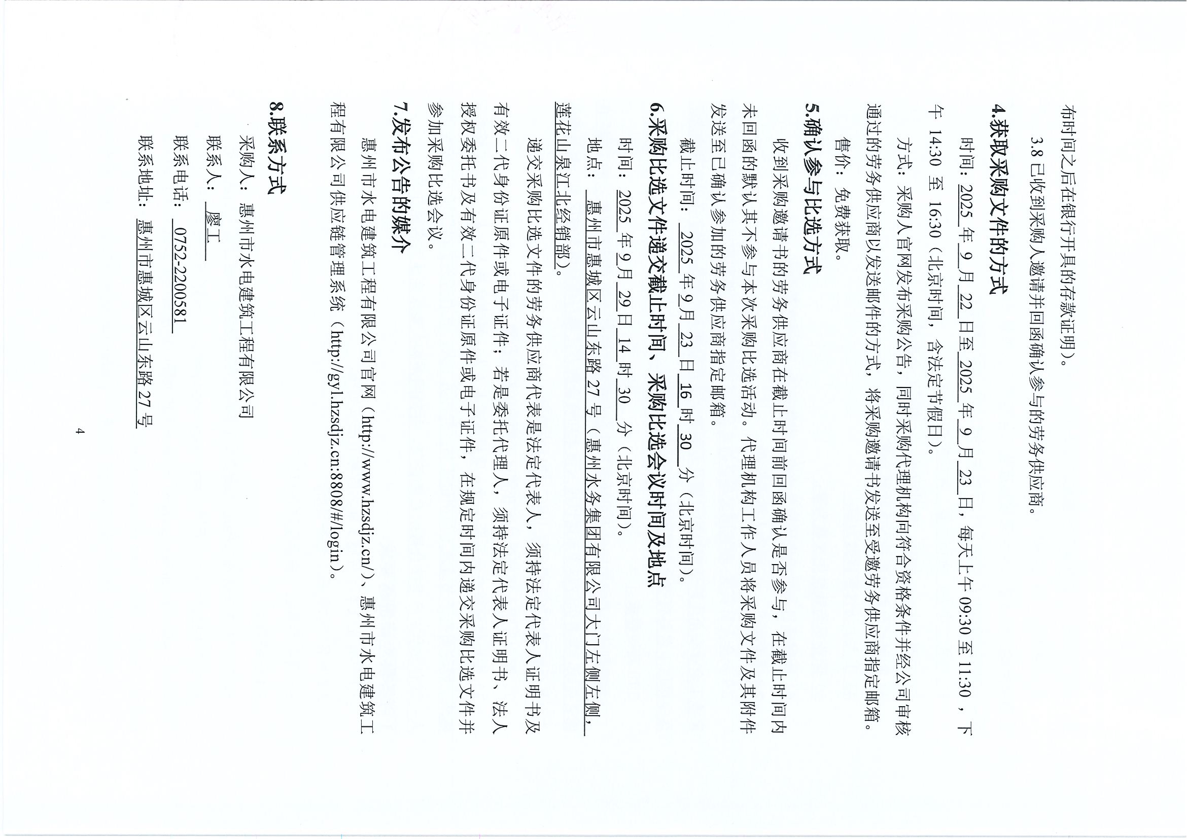 惠州市市政供水管網(wǎng)改造項目(含惠城區(qū)、仲愷高新區(qū)、惠陽區(qū))施工勞務(wù)采購中選候選人公示