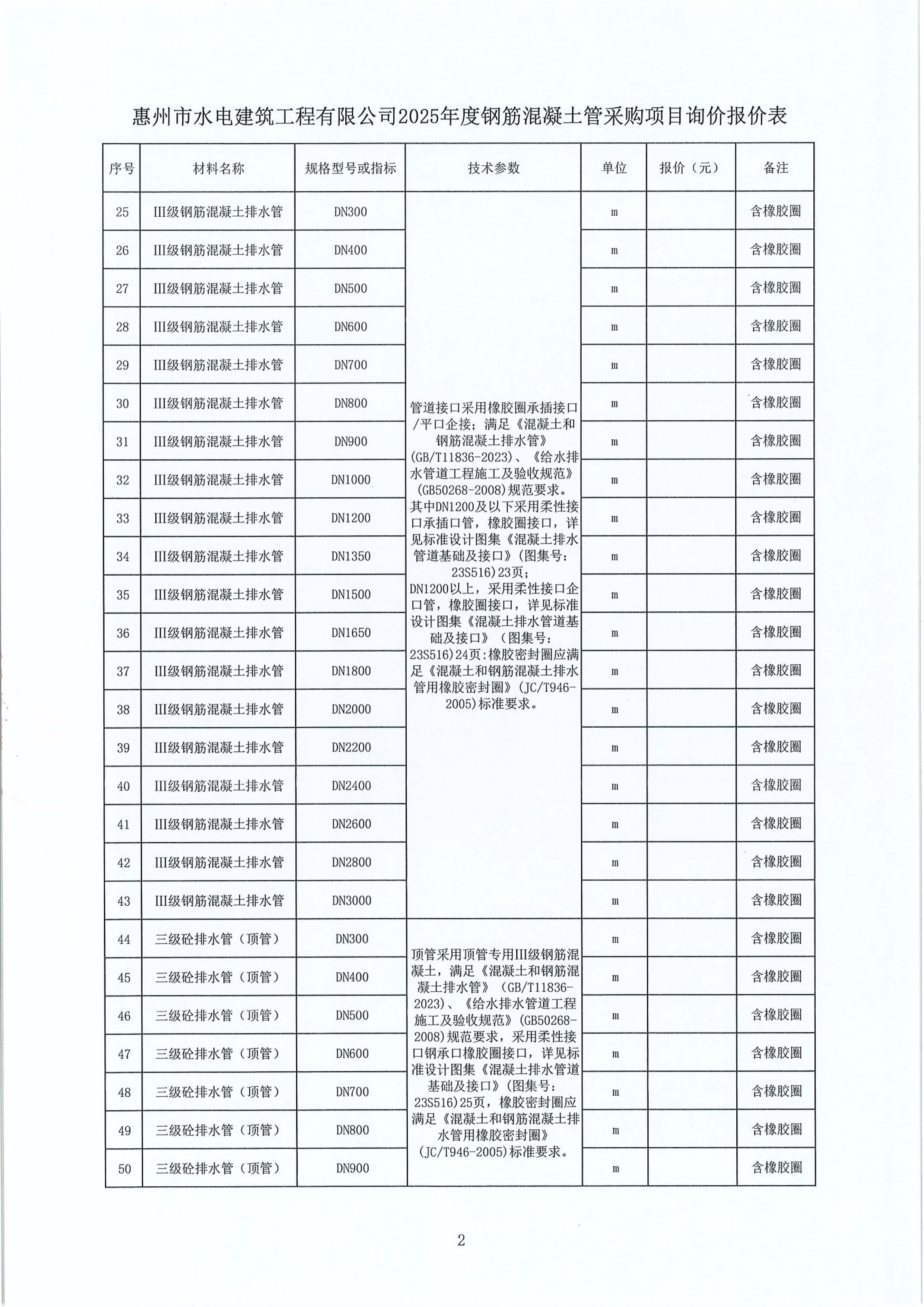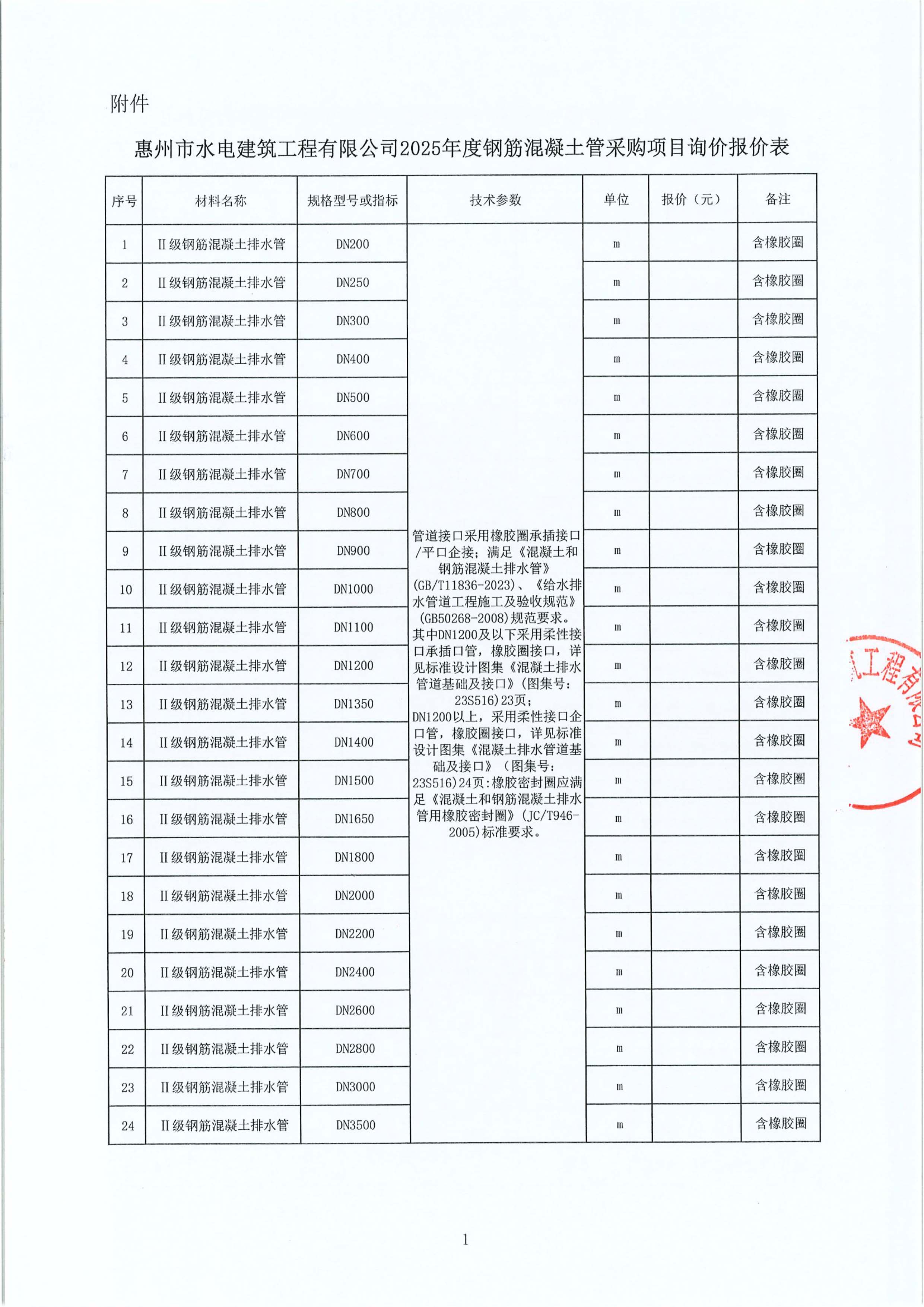 惠州市水電建筑工程有限公司2025年度鋼筋混凝土管采購項(xiàng)目詢價(jià)公告附件: