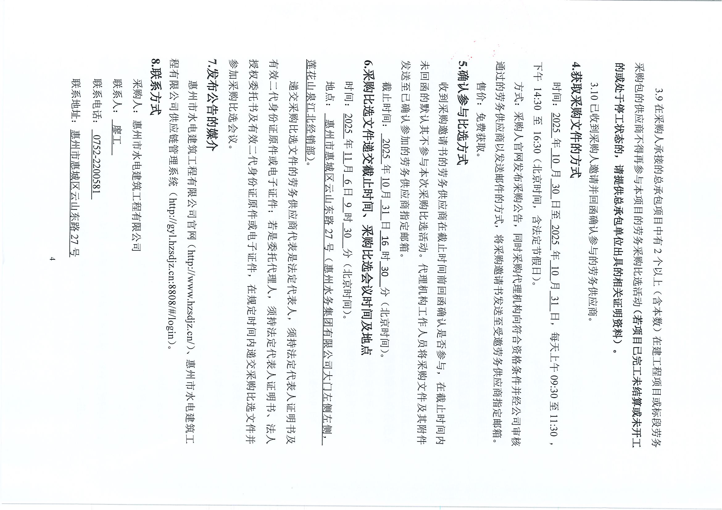 惠州市增江龍門段治理工程施工(一標(biāo)段)勞務(wù)采購(第二次)比選公告