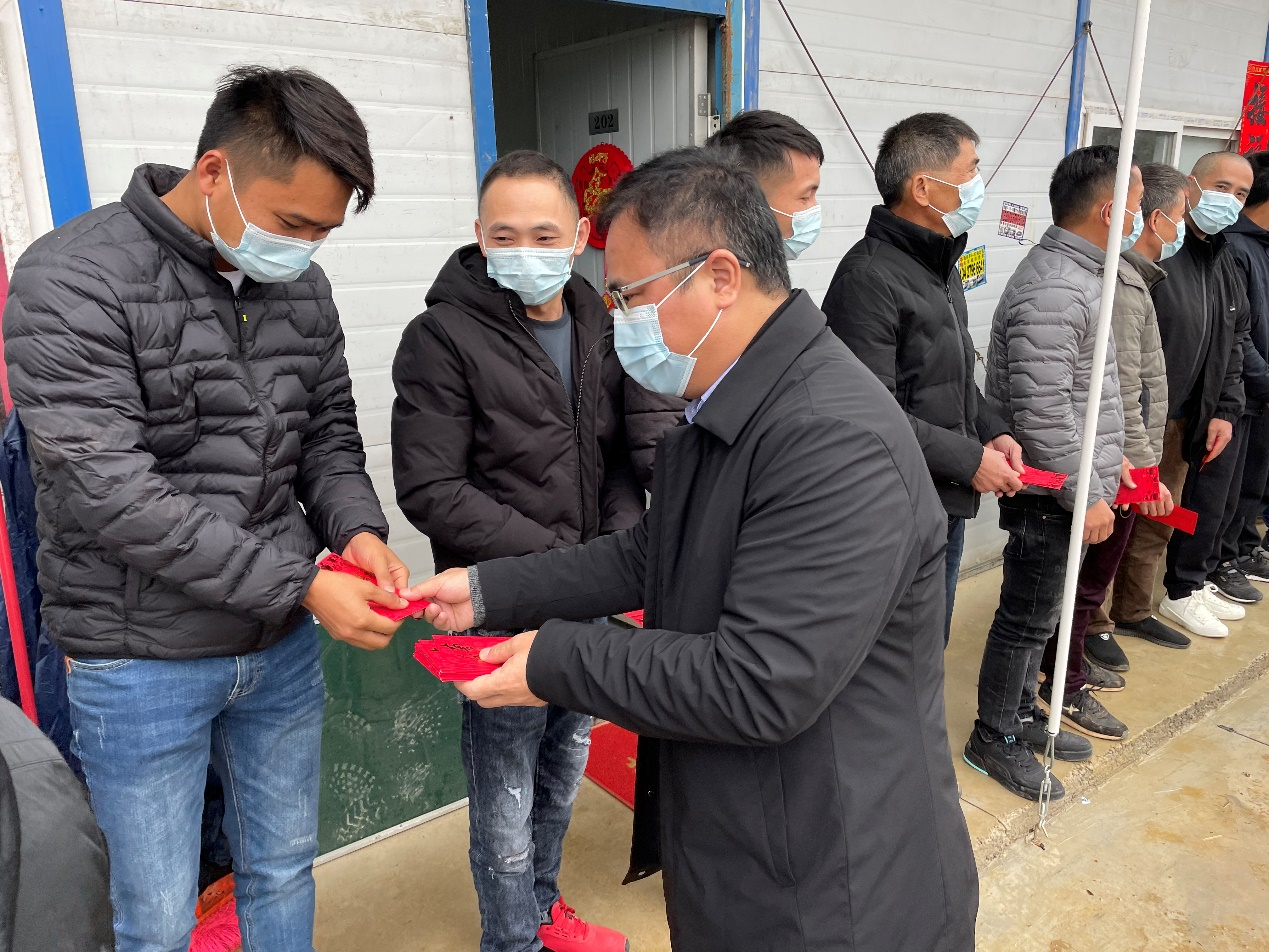 隨后,領導同志來到項目部與值守職工親切座談,要求并叮囑大家過年要吃好、喝好,施工注意安全,在確保項目施工進度、做好安全生產的同時也要做好個人防護,嚴格落實各項疫情防控措施,保證安全高效完成施工任務,平平安安過大年。(通訊員:鄧慧)