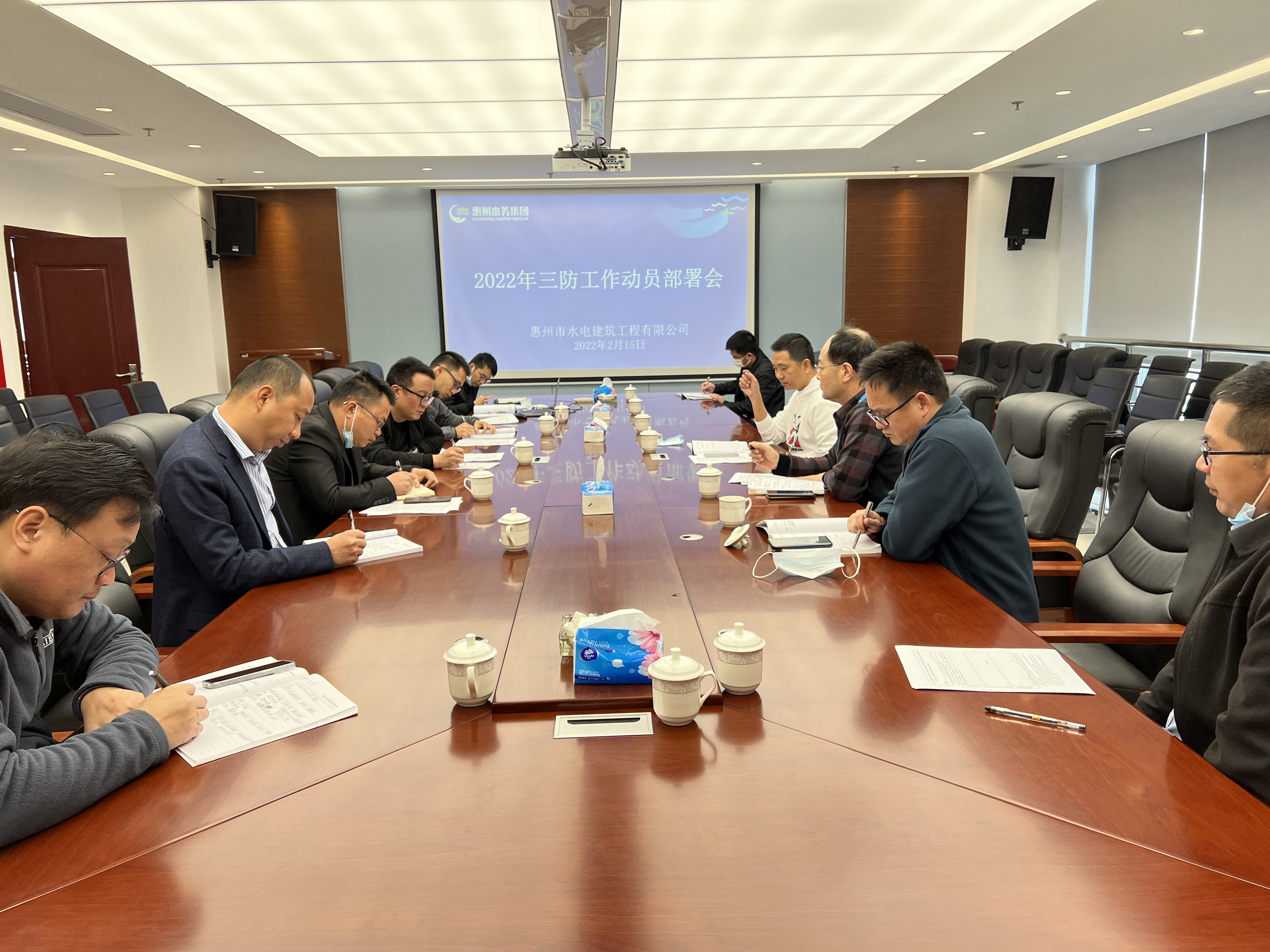 2月15日,公司副總經(jīng)理陳占瑞主持召開2022年三防工作動員部署會,傳達了省、市水利部門對三防工作的相關(guān)要求。