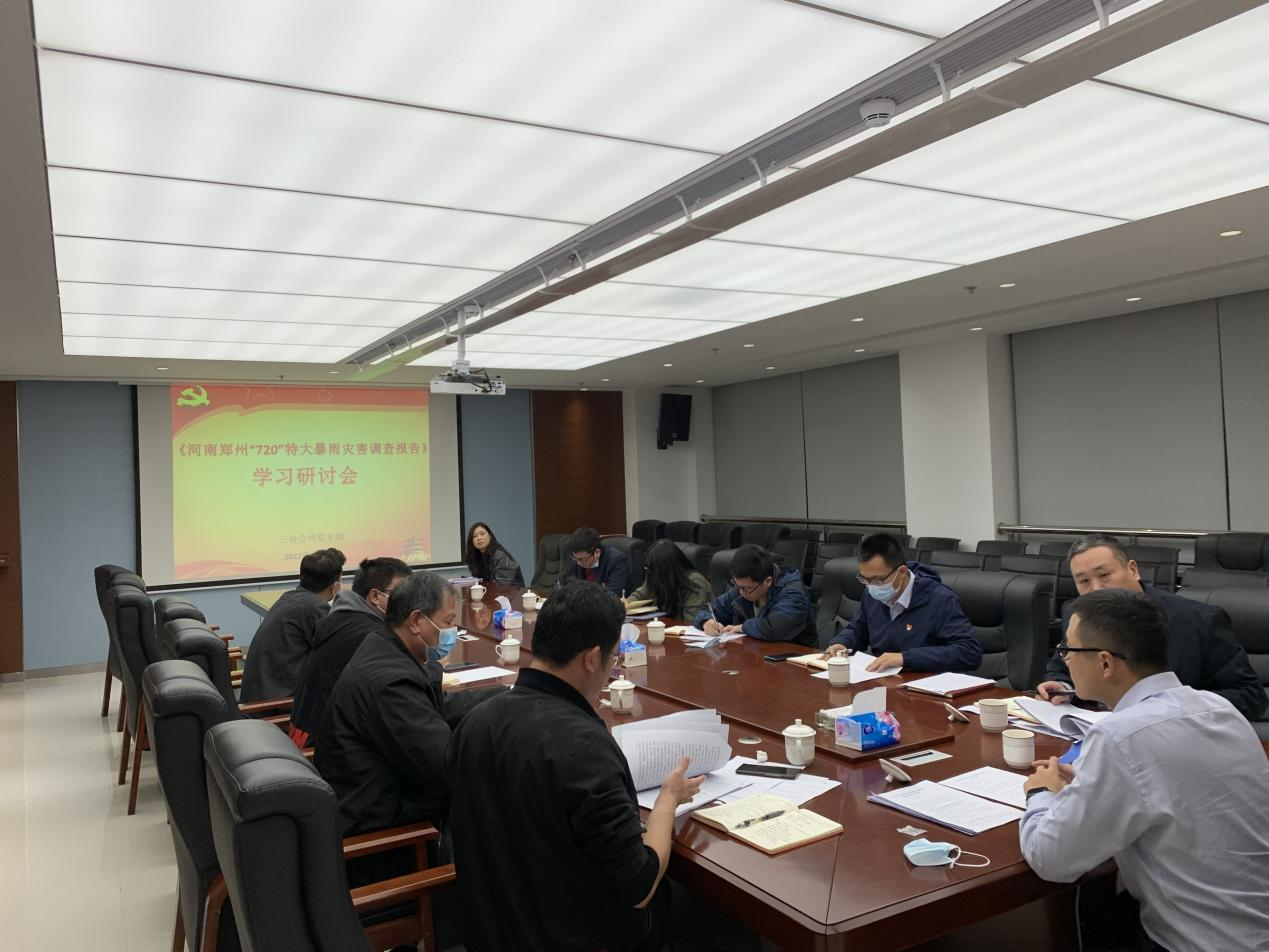 2月25日,三分公司黨支部書記王東海組織全體黨員開展《河南省鄭州市“720”特大暴雨災(zāi)害調(diào)查報告》專題學習研討會,公司黨委副書記、總經(jīng)理黃敏出席指導。