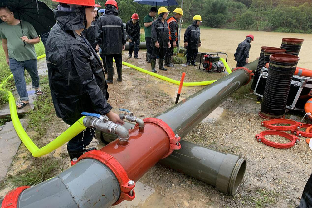 5月13日上午十點(diǎn),我司接到市水利局電話通知,龍門縣小水庫(kù)(山塘)因連日暴雨已超警戒水位,情況非常危急,急需防汛搶險(xiǎn)隊(duì)前往龍門進(jìn)行應(yīng)急排水搶險(xiǎn),公司領(lǐng)導(dǎo)迅速響應(yīng),立即安排第五搶險(xiǎn)分隊(duì)搶險(xiǎn)隊(duì)員25人,搶險(xiǎn)車輛5臺(tái),攜帶移動(dòng)式虹吸搶險(xiǎn)泵、應(yīng)急照明燈、發(fā)電機(jī)組、抽水泵和一批應(yīng)急救生設(shè)備,僅用四十分鐘就完成集結(jié),整裝出發(fā)前往龍門縣平陵鎮(zhèn)和沙逕鎮(zhèn)開(kāi)展排水任務(wù);經(jīng)過(guò)5小時(shí),我隊(duì)成功完成虹吸泵安裝,開(kāi)始對(duì)超汛限水庫(kù)進(jìn)行排水。經(jīng)過(guò)大家共同努力,晚上21點(diǎn)順利完成排水任務(wù),共排水12000m3。