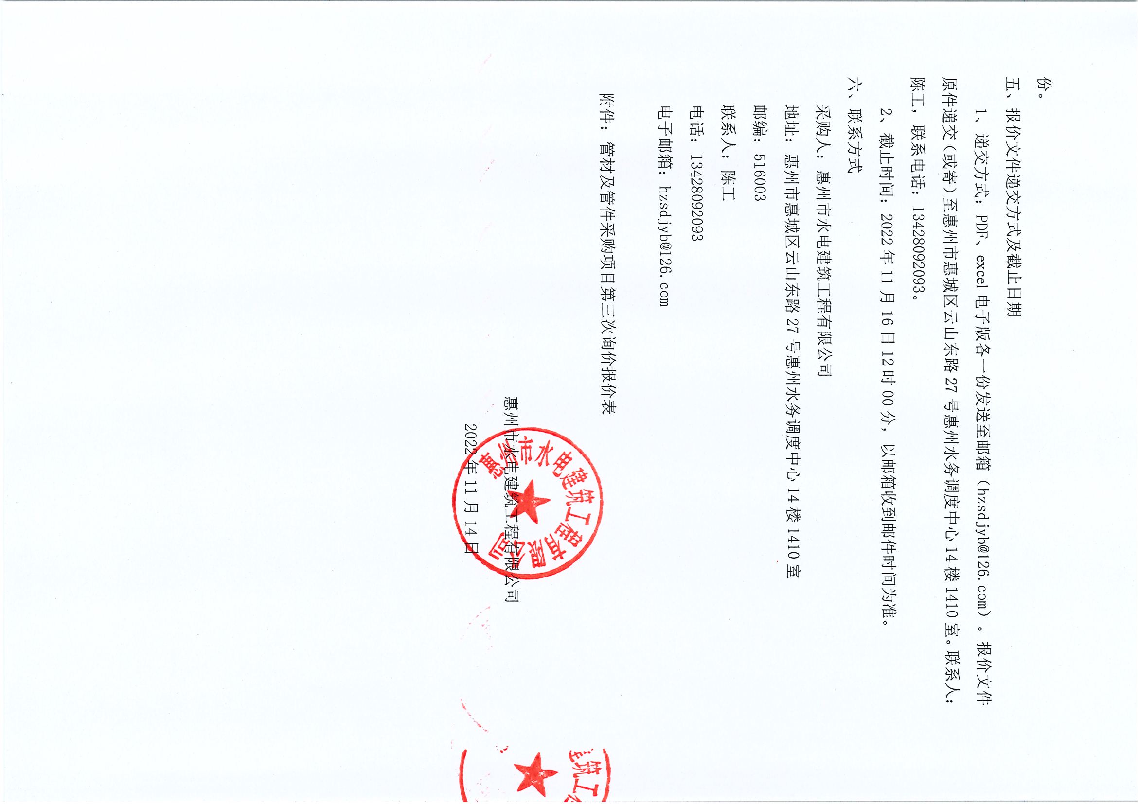 管材及管件采購(gòu)項(xiàng)目第二次詢價(jià)公告