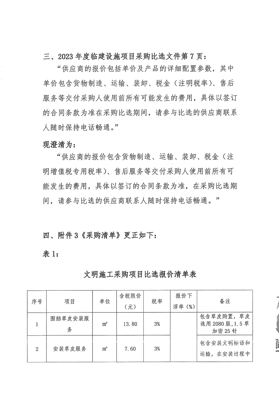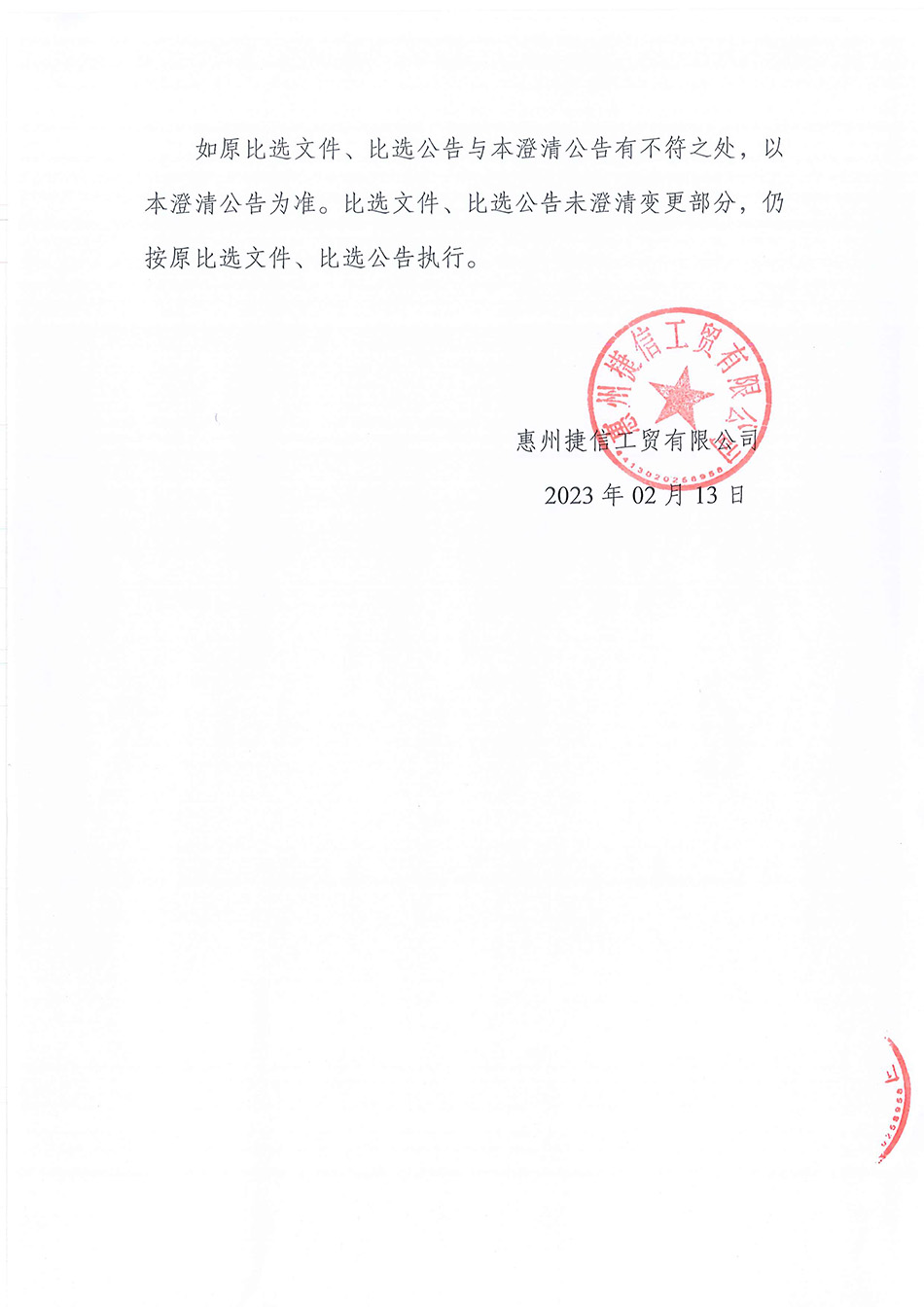 捷信工貿(mào)公司2023年度臨建設(shè)施項目采購澄清通知