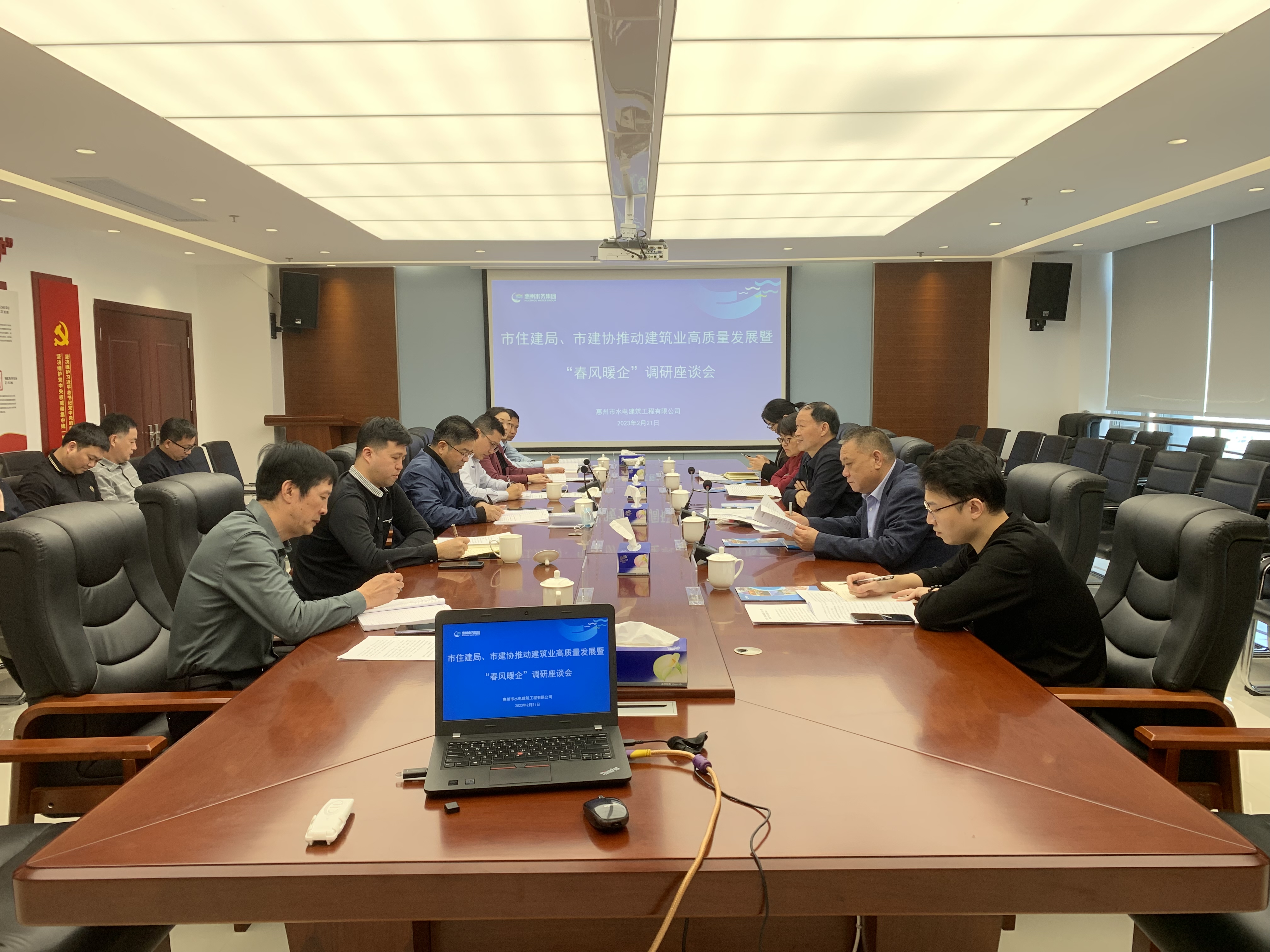 2月21日上午,惠州市住房和城鄉(xiāng)建設(shè)局四級調(diào)研員利路發(fā)率隊到公司開展推動建筑業(yè)高質(zhì)量發(fā)展暨“春風(fēng)暖企”調(diào)研活動。市建筑業(yè)協(xié)會領(lǐng)導(dǎo)及業(yè)務(wù)負(fù)責(zé)人、市住建局相關(guān)業(yè)務(wù)負(fù)責(zé)人,公司領(lǐng)導(dǎo)班子及相關(guān)負(fù)責(zé)人參會。