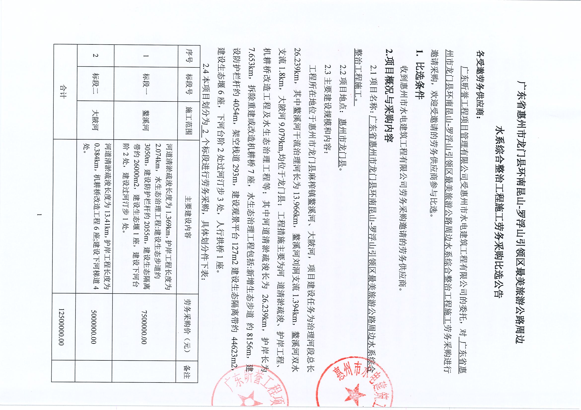 廣東省惠州市龍門縣環(huán)南昆山-羅浮山引領(lǐng)區(qū)最美旅游公路周邊水系綜合整治工程施工勞務(wù)采購比選公告