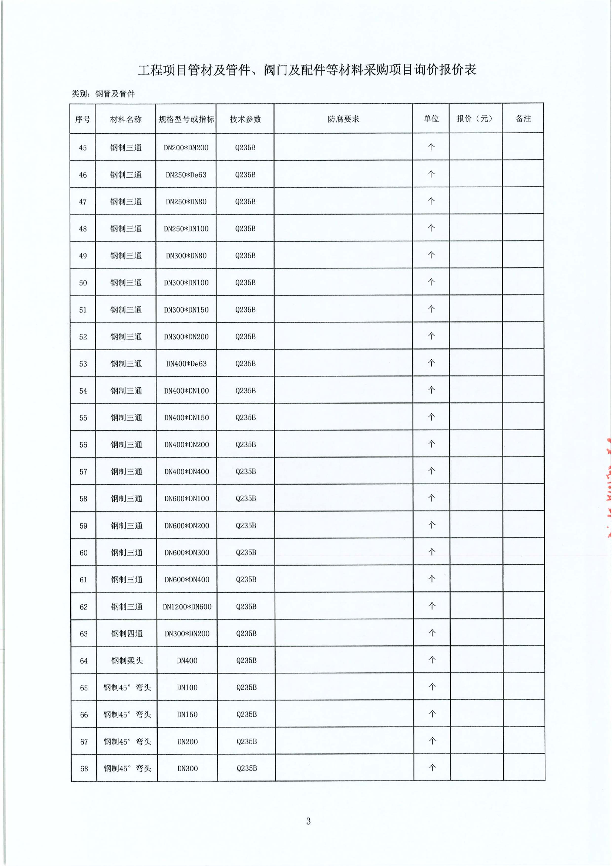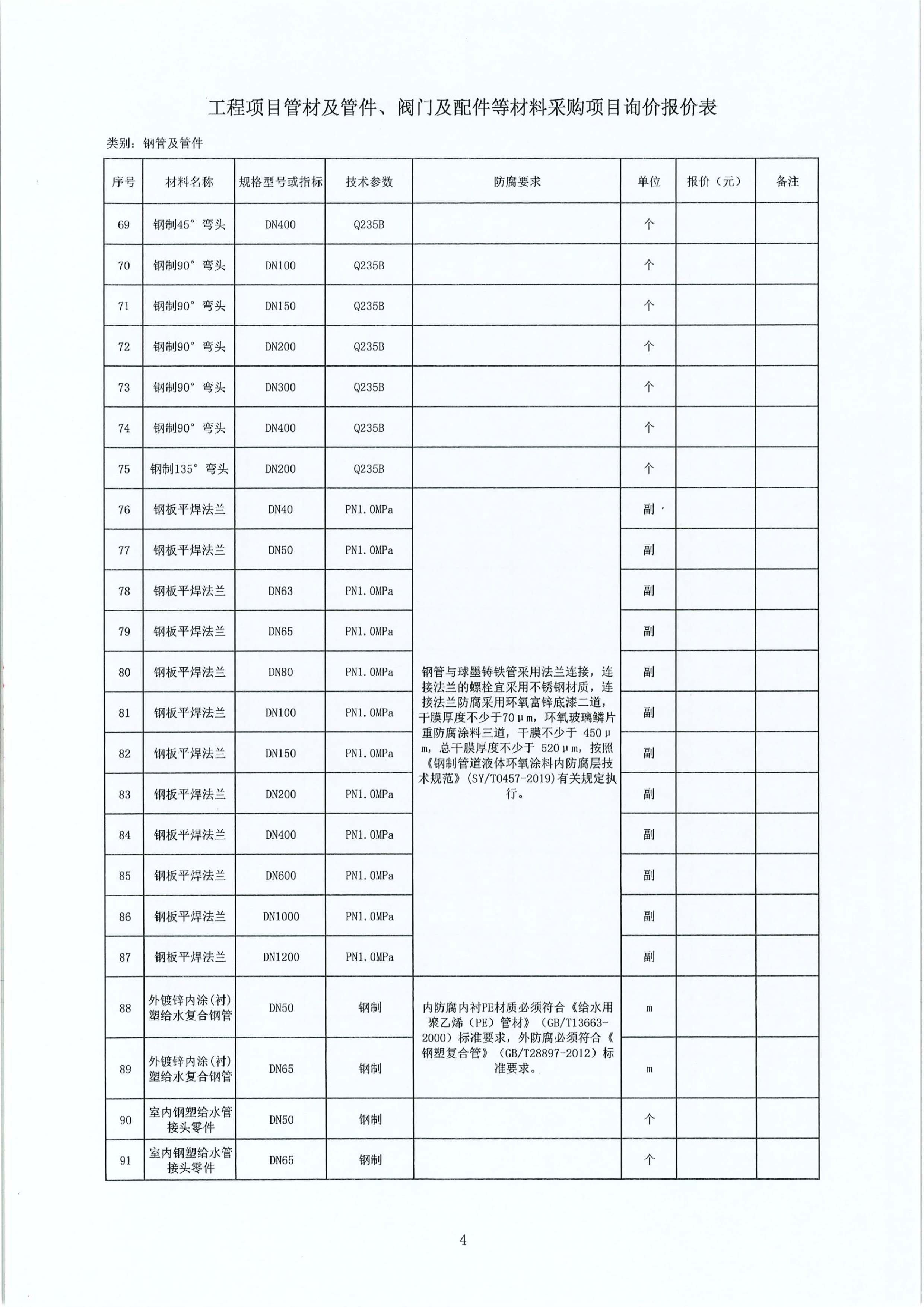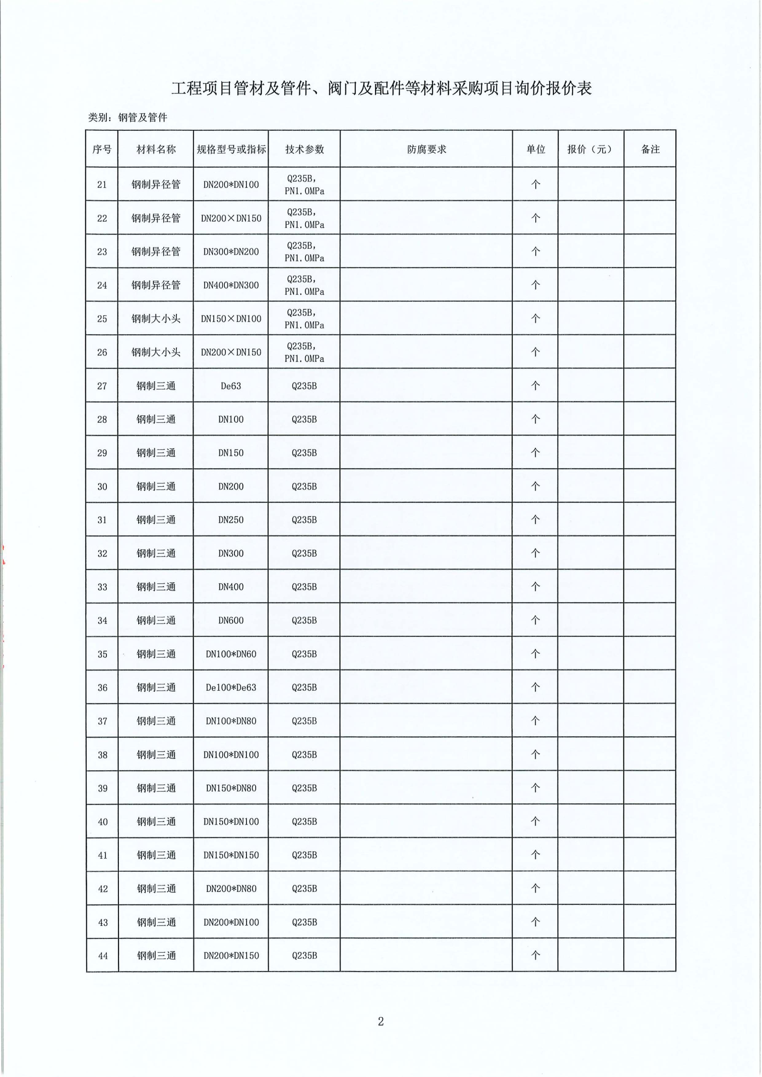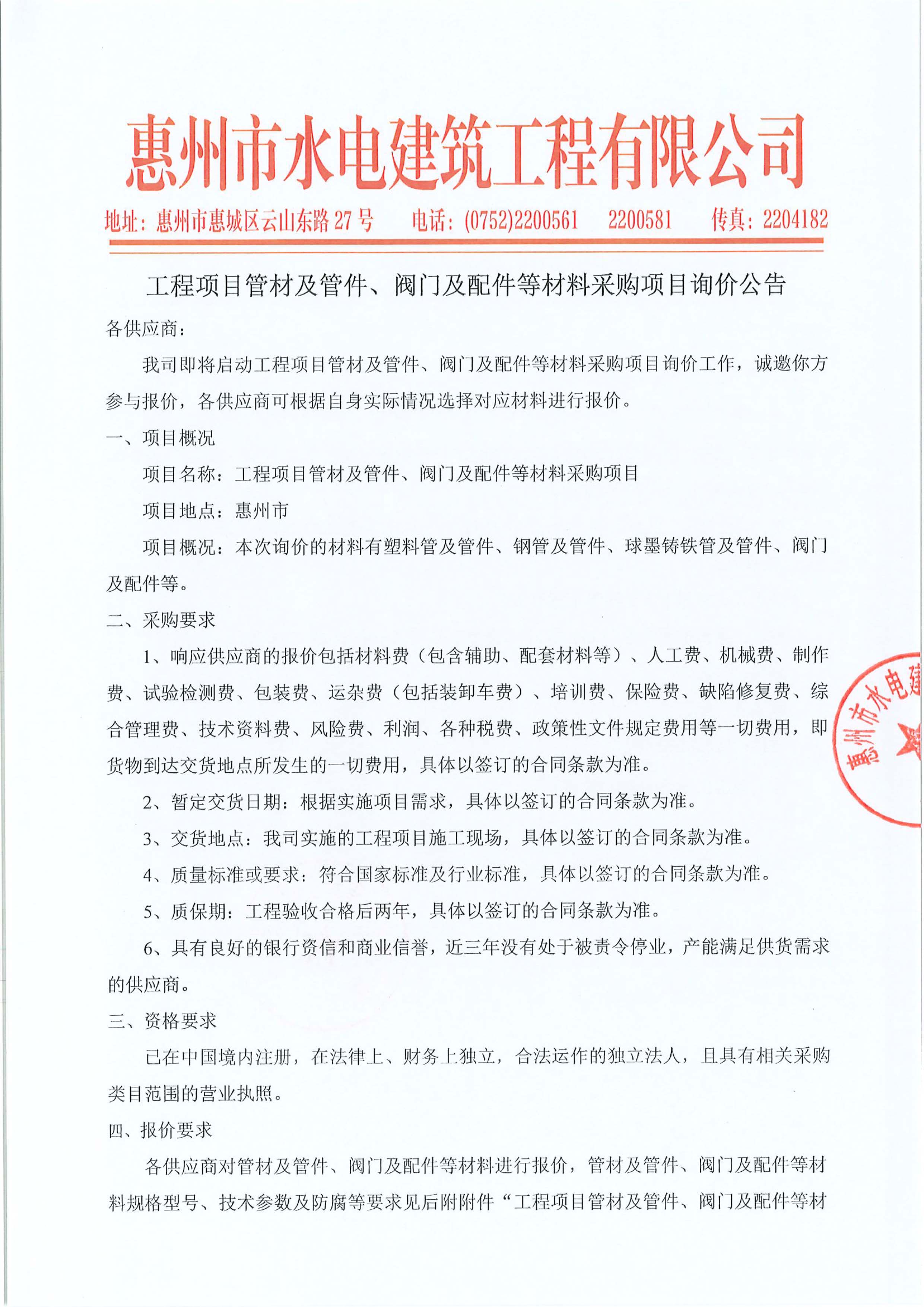 工程項(xiàng)目管材及管件、閥門及配件等材料采購(gòu)項(xiàng)目詢價(jià)公告