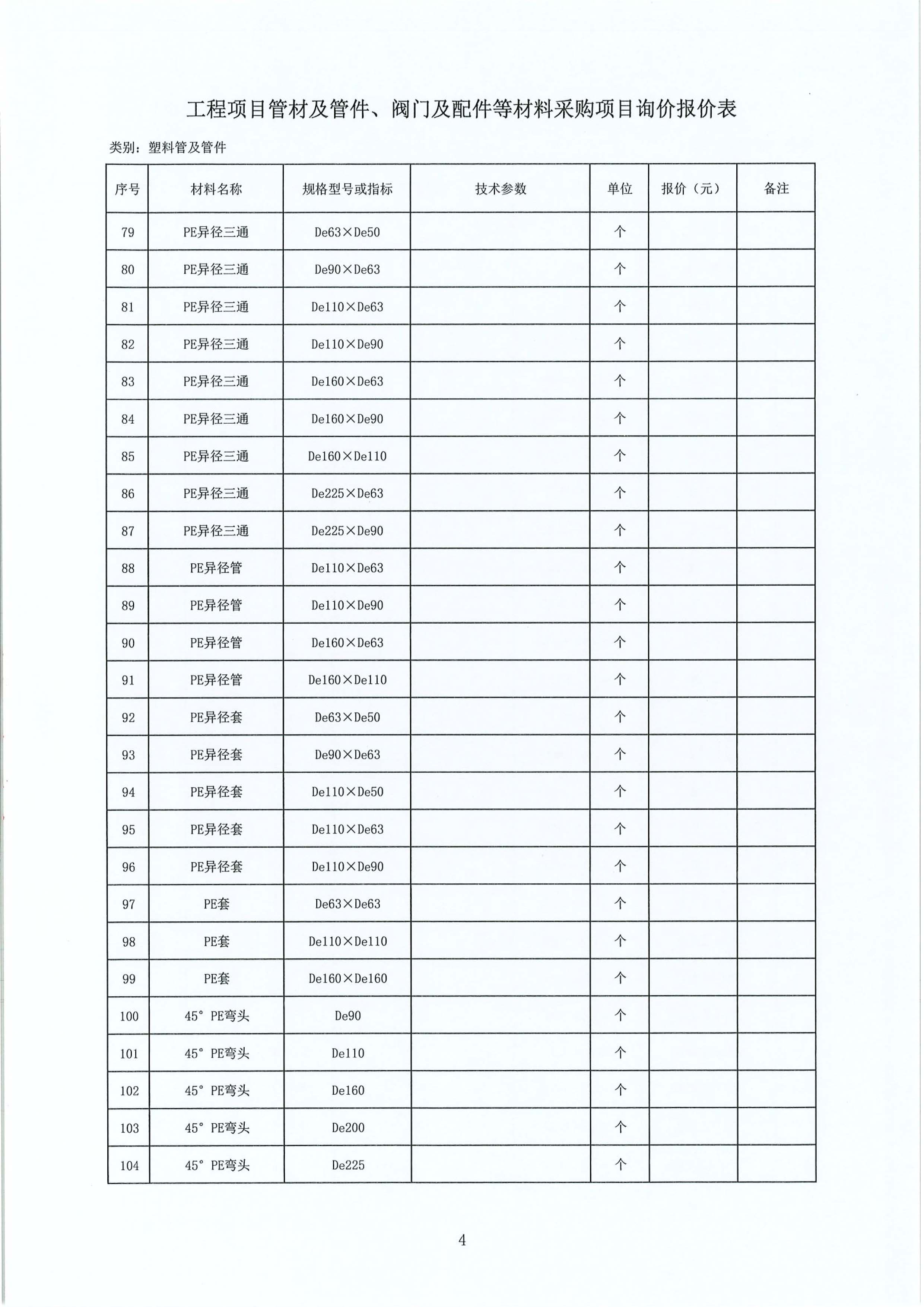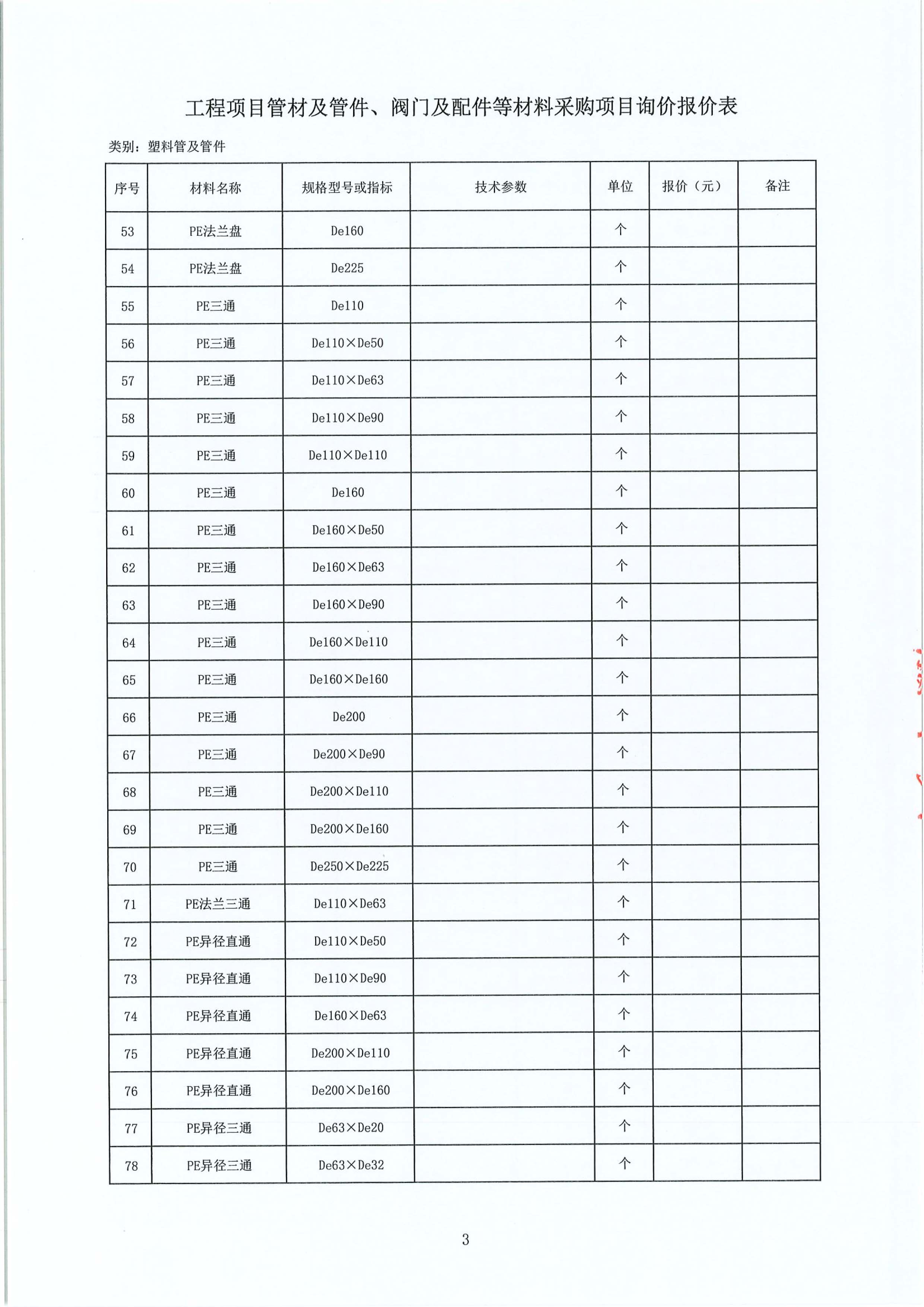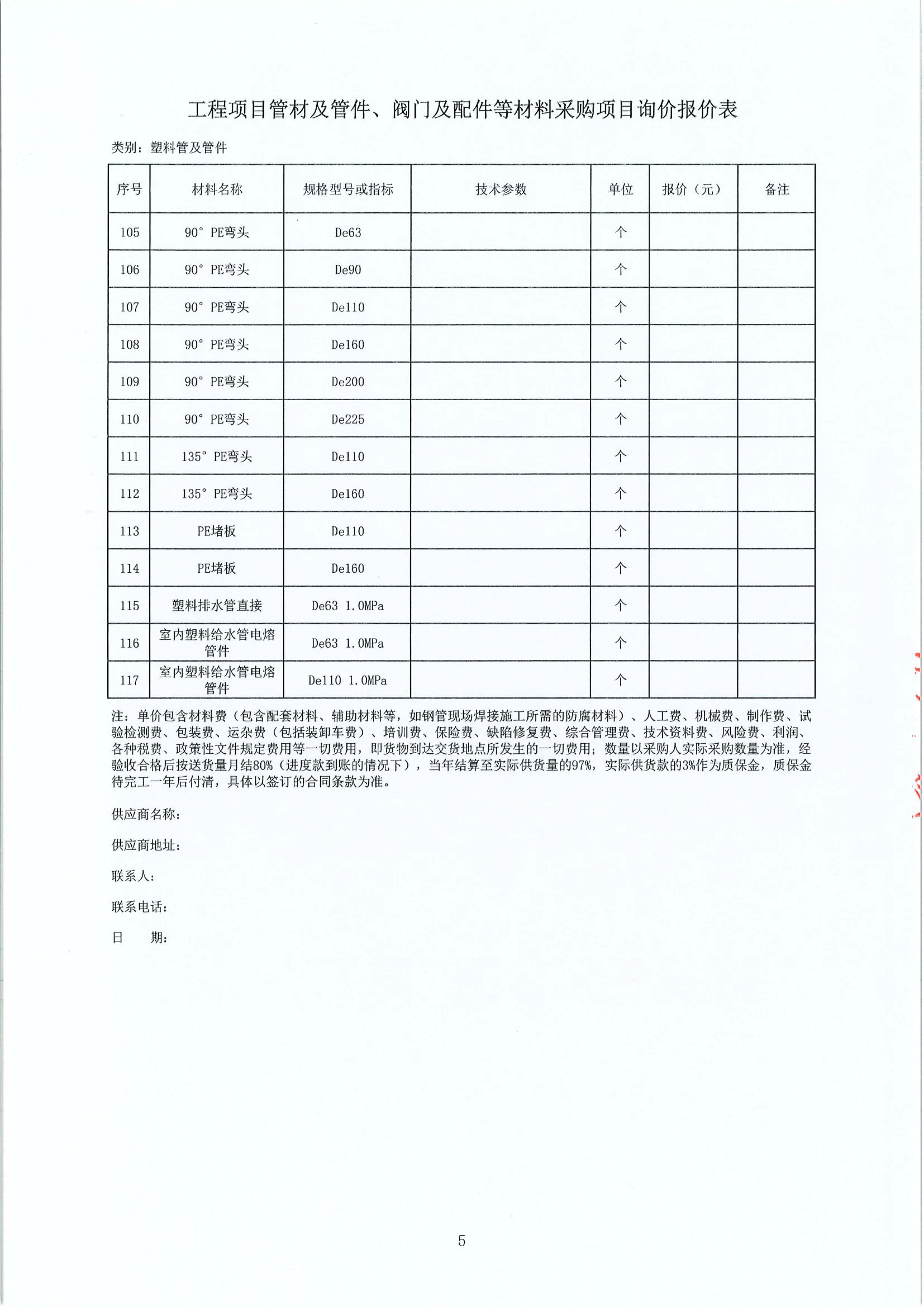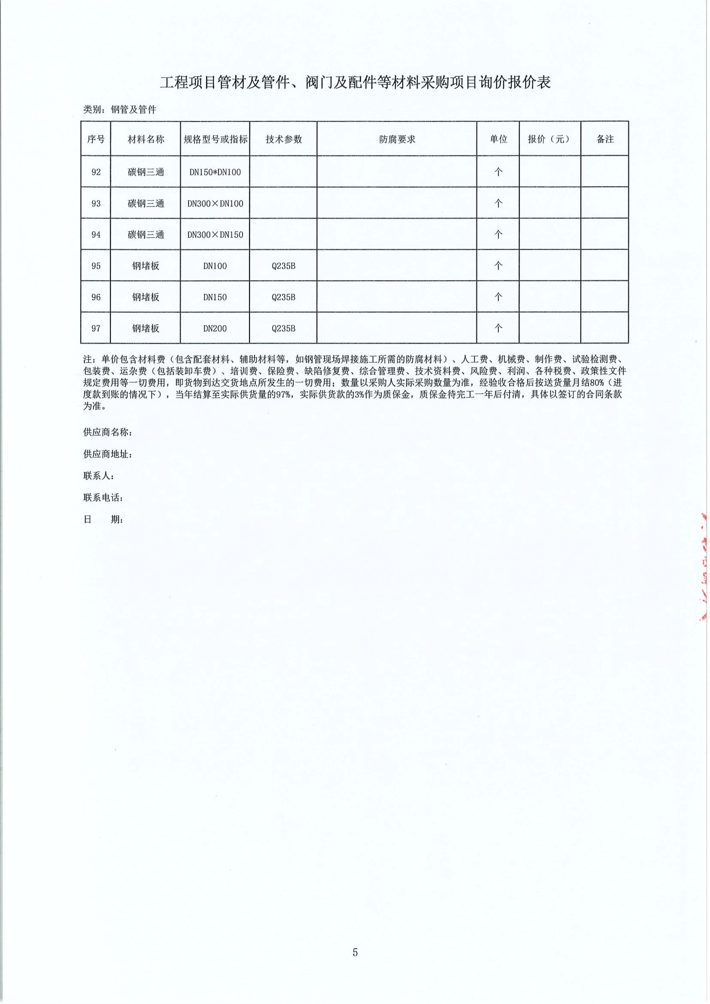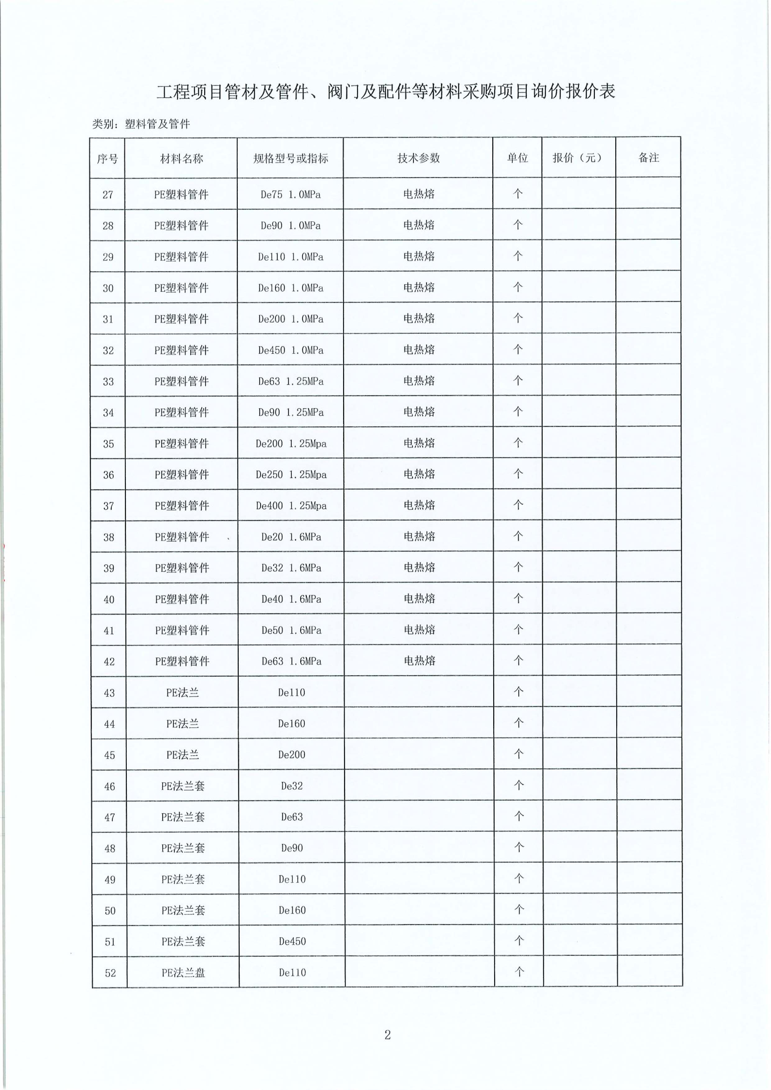 工程項(xiàng)目管材及管件、閥門及配件等材料采購(gòu)項(xiàng)目詢價(jià)公告