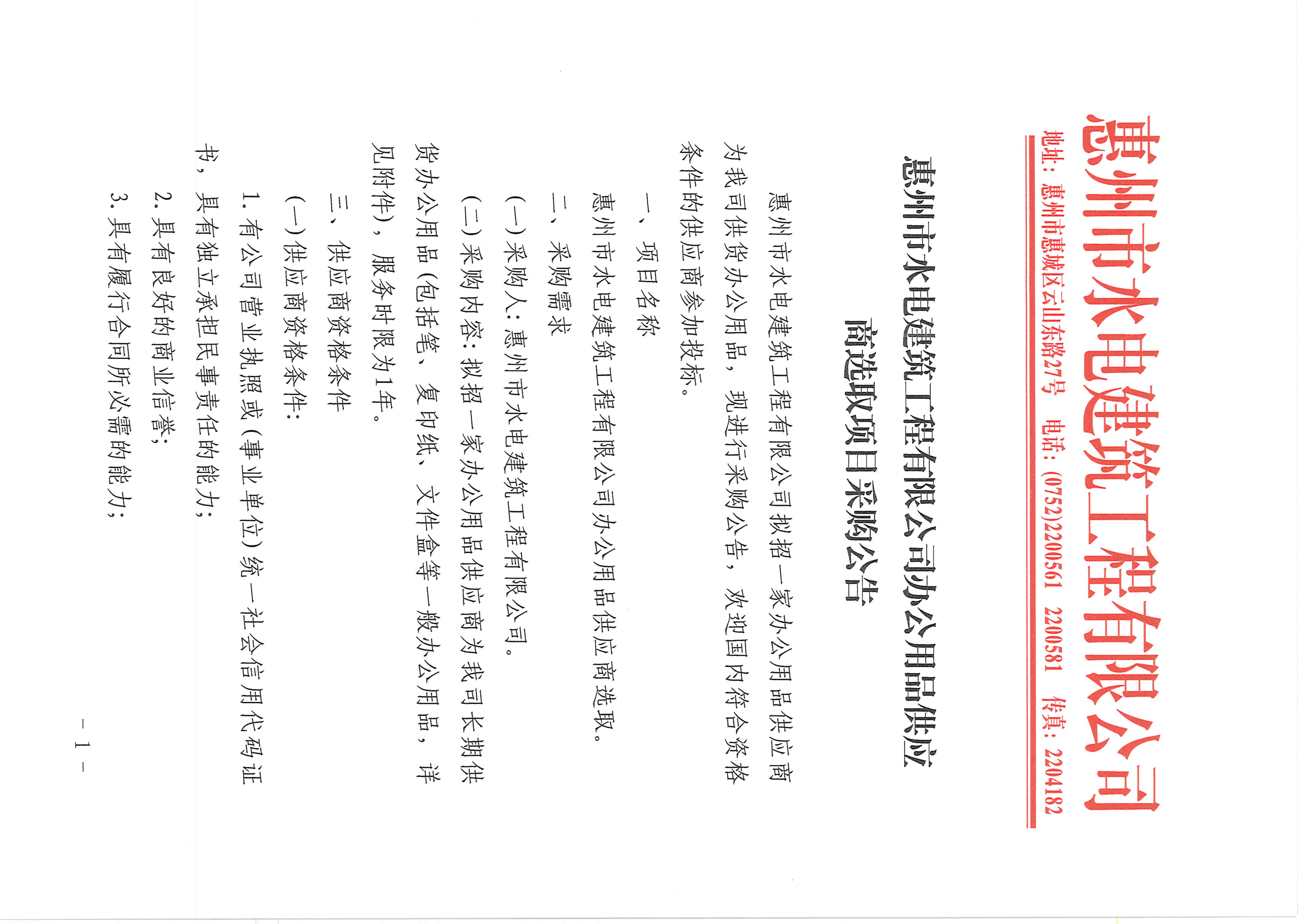惠州市水電建筑工程有限公司辦公用品供應(yīng)商選取項目采購公告附件:
