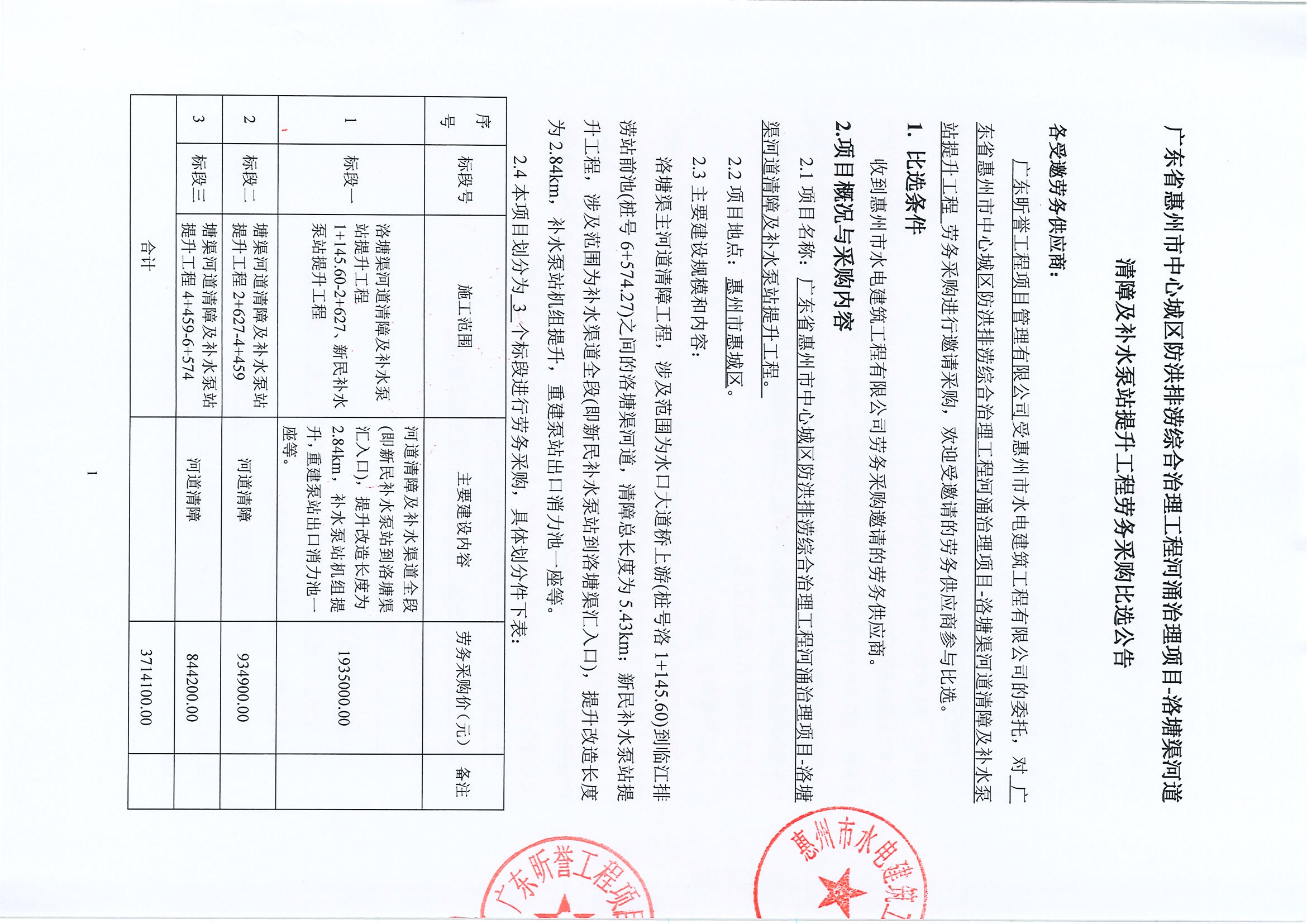 廣東省惠州市中心城區(qū)防洪排澇綜合治理工程河涌治理項目-洛塘渠河道清障及補(bǔ)水泵站提升工程勞務(wù)采購比選公告