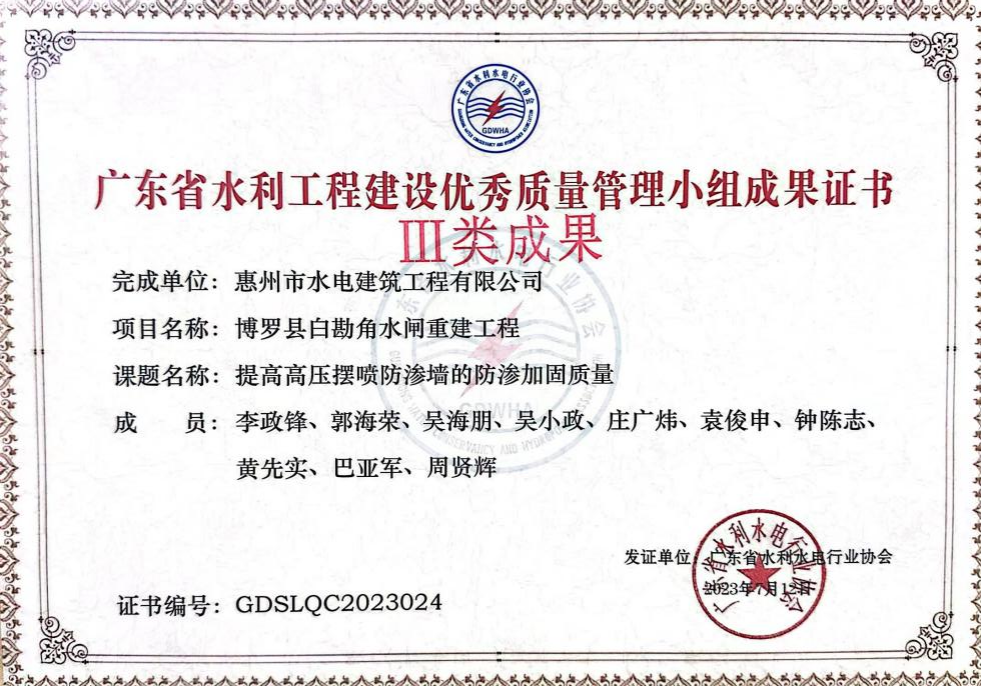 7月11日,公司技術(shù)中心相關(guān)人員前往清遠(yuǎn)參加由廣東省水利水電行業(yè)協(xié)會(huì)召開(kāi)的2023年度廣東省水利建設(shè)質(zhì)量管理小組成果發(fā)表評(píng)價(jià)暨交流學(xué)習(xí)大會(huì),匯報(bào)“提高高壓擺噴防滲墻的防滲加固質(zhì)量”課題成果并獲得優(yōu)秀成果獎(jiǎng)項(xiàng)—Ⅲ類(lèi)成果。2023年面對(duì)新形勢(shì),開(kāi)啟新征程,公司全面貫徹落實(shí)…......