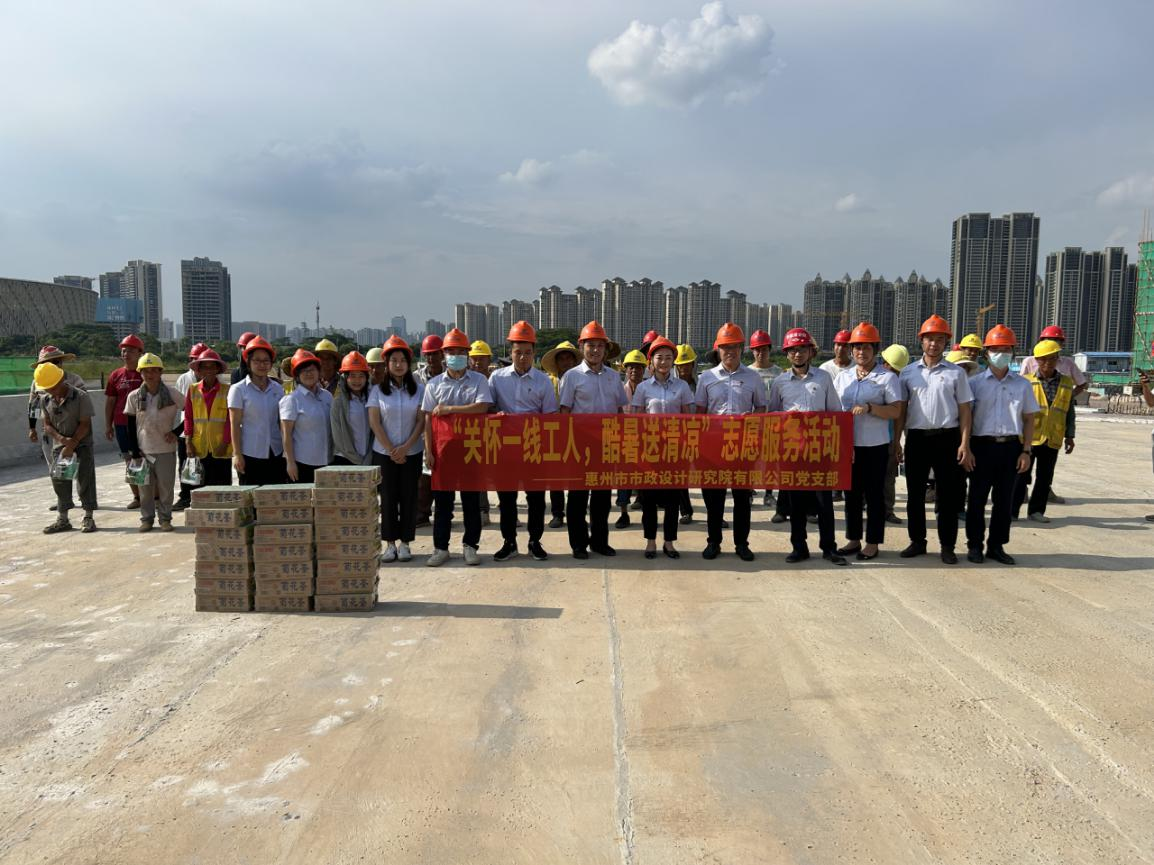 8月9日,市政設(shè)計院黨支部書記、總經(jīng)理張敏帶領(lǐng)公司黨員前往金山新城明德路、體育南路等5條配套市政道路工程項目現(xiàn)場,開展“關(guān)懷一線工人,酷暑送清涼”志愿服務(wù)活動,將黨組織的關(guān)懷送到一線工作人員手中。炎炎夏日送清涼,絲絲關(guān)愛入心田,近段時間惠城區(qū)連日高溫,驕陽似火,酷暑難耐,仍有許多工程建設(shè)人員堅守在一線,用他們的汗水為城市建設(shè)默默奉獻(xiàn)著自己的力量。
