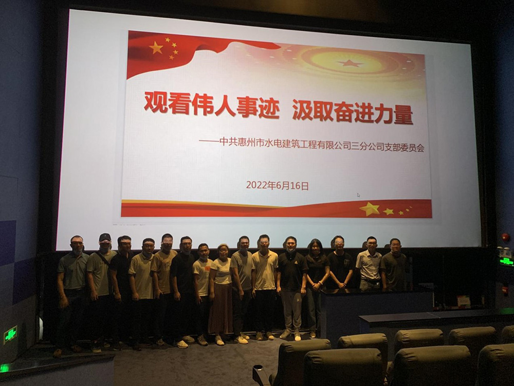 為推動黨史學習教育常態(tài)化長效化,利用革命題材電影資源,營造知史愛黨、知史愛國的濃厚氛圍,惠州市水電建筑工程有限公司第三分公司黨支部于2022年6月17日開展“觀看偉人事跡,汲取奮進力量”主題黨日活動,組織支部全體黨員、發(fā)展對象和積極分子觀看獻禮建黨100周年重大革命題材電影《鄧小平小道》。