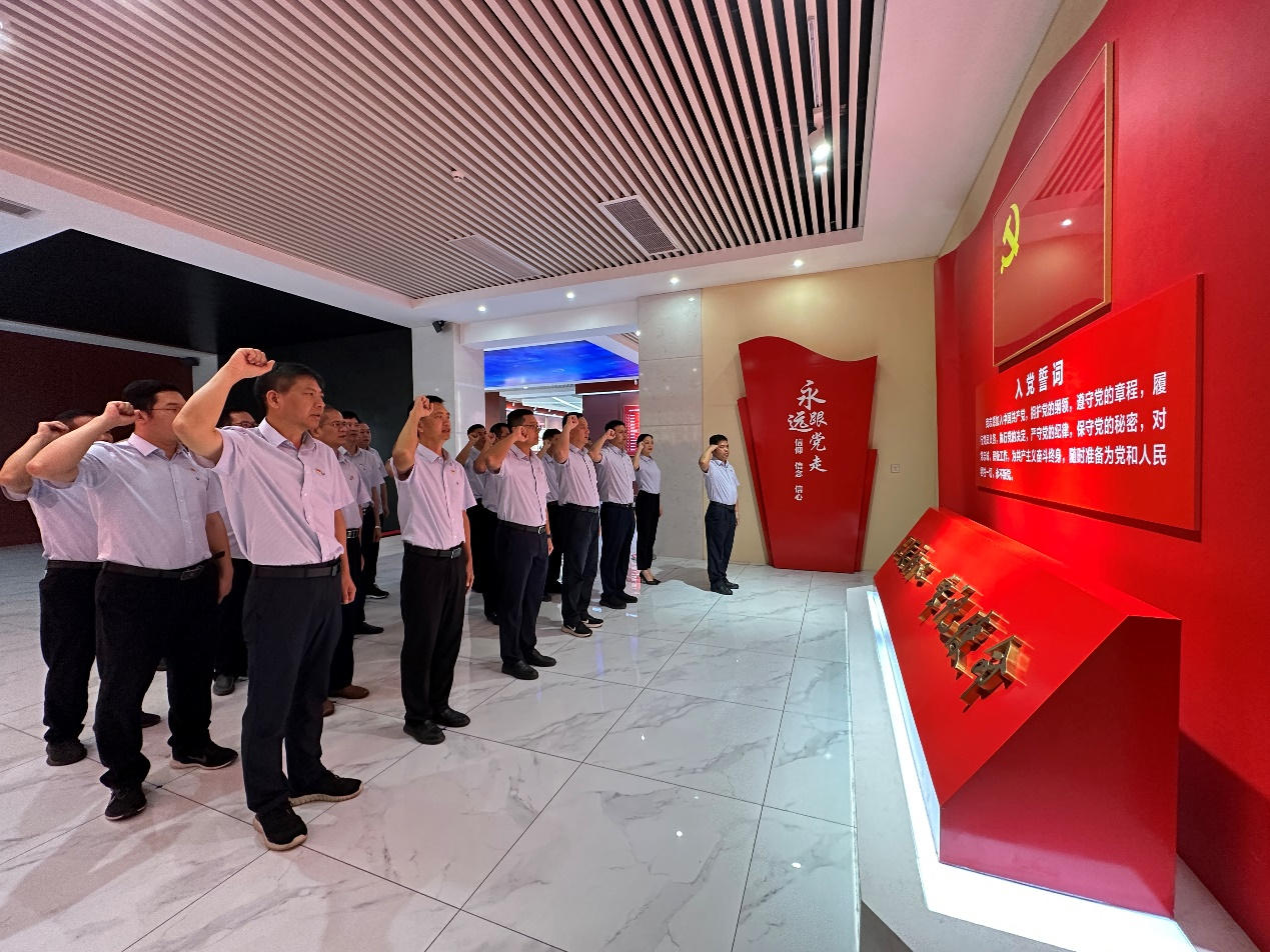 參觀活動結(jié)束后,由黨委書記、董事長鄭海強同志帶領(lǐng)黨員干部重溫入黨誓詞,大家面向黨旗、高舉右拳,以洪亮的聲音喚起入黨初心,銘記責任擔當。通過此次參觀學習活動,讓大家對正風、肅紀、促發(fā)展有了更深入的理解和認識,紛紛表示要以廉政文化教育基地為教材,以時代楷模為榜樣,以反面教材為警鐘,自覺做到克己奉公、廉潔自律,永葆共產(chǎn)黨人清正廉潔的政治本色。(通訊員:鐘靖瑩)